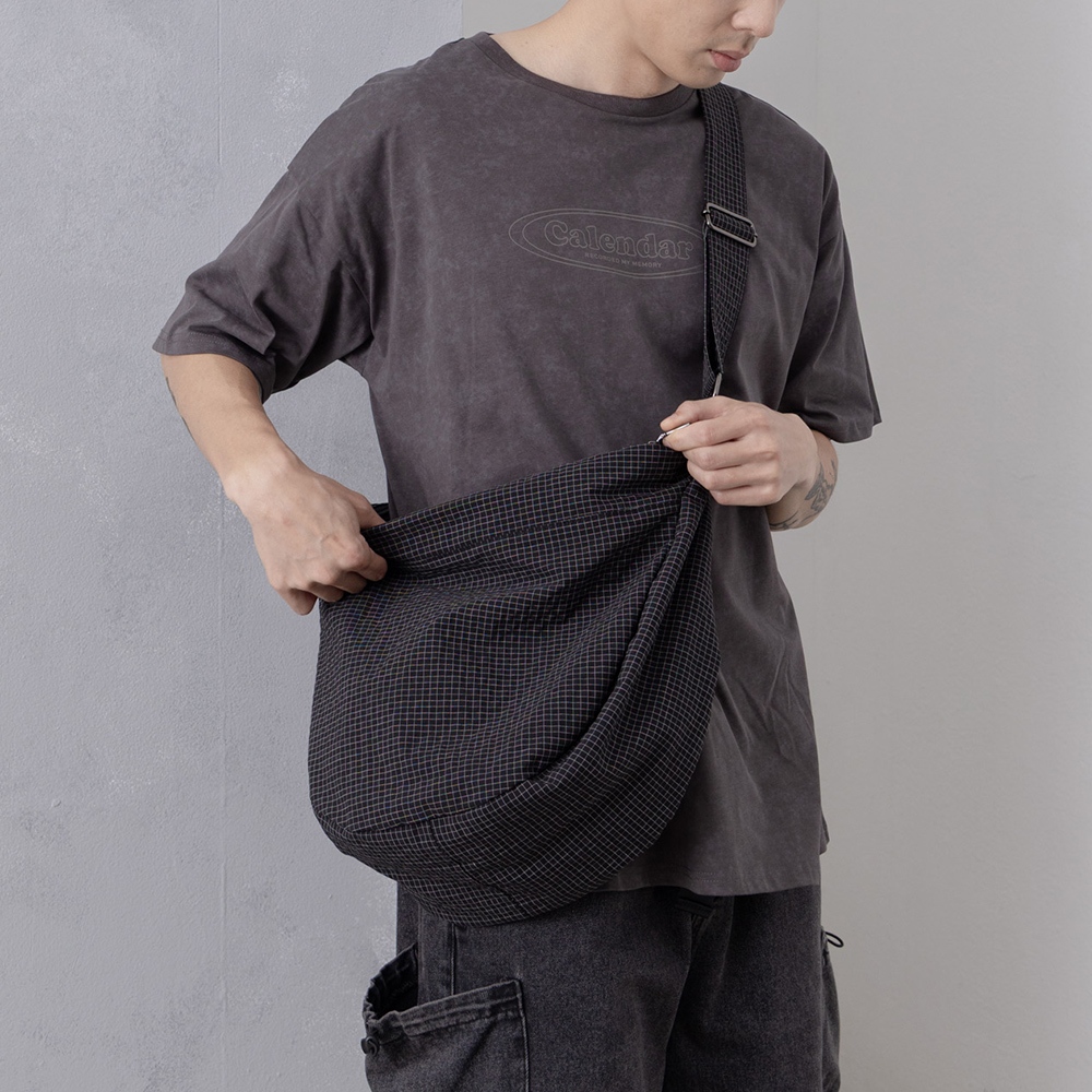 QUEENSHOP_ S 男裝 格紋設計側背大水餃包 現+預 【06070406】依賣場QUEENSHOP