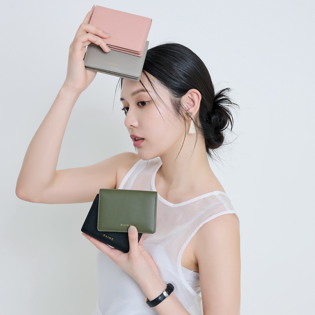 S’AIME 頭層真皮城市卡片夾黑色|粉紅|灰色|綠色Card HoldersS’AIME 東京企劃官方旗艦店
