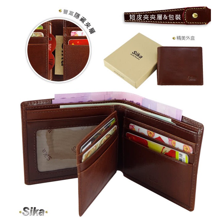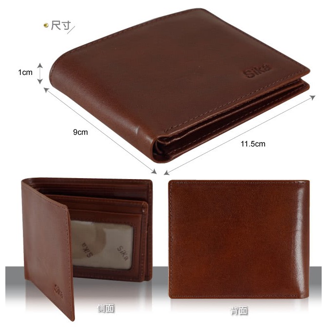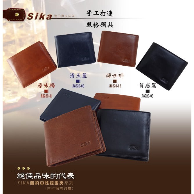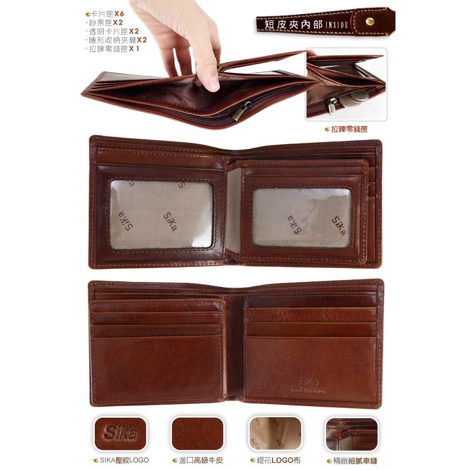 【Sika】【台製】義大利素面牛皮簡約中性短皮夾含拉鍊零錢匣(A8220-02深咖啡) 【全館免運】清玉藍色|原味褐色|深咖啡色|沉穩黑色Bifold & Trifold WalletsSika -台灣手工包(官方旗艦店)