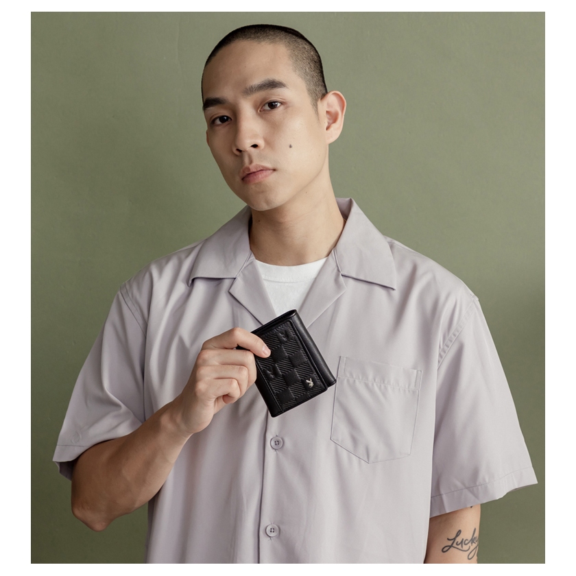 PLAYBOY – 三折短夾 Checkerboard系列 – 黑色