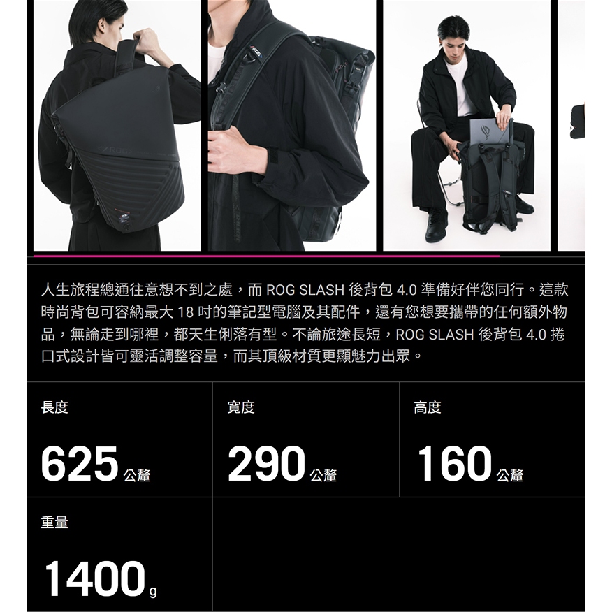 ROG Slash BACKPACK 4.0 後背包 可容納18吋的筆電 可調捲口設計 防潑水 磁吸式扣環 背包 旅行包主商品Laptop BackpacksROG 華碩授權店 | 電競周邊館