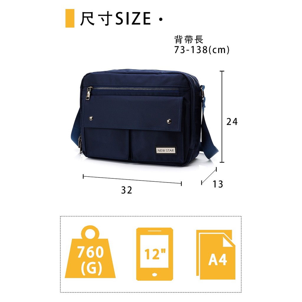 NEW STAR 側背包 質感防水雙層A4大容量斜背包包 公事包 男 女 男包 BL168黑色|藍色|卡其NEW STAR 包包