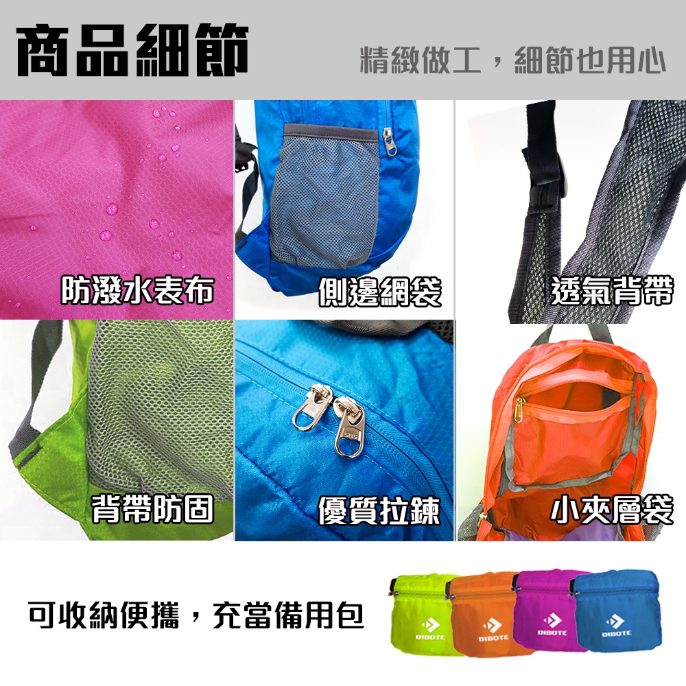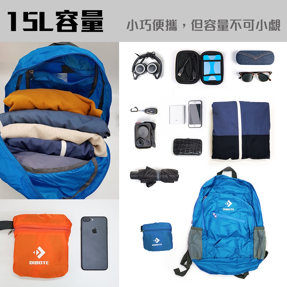 迪伯特DIBOTE 摺疊登山攻頂包15L《名雪購物》可折疊收納 輕便攻頂包 騎行/登山小背包 摺疊包 折疊包綠|紫|橘|藍Nayuki 名雪購物
