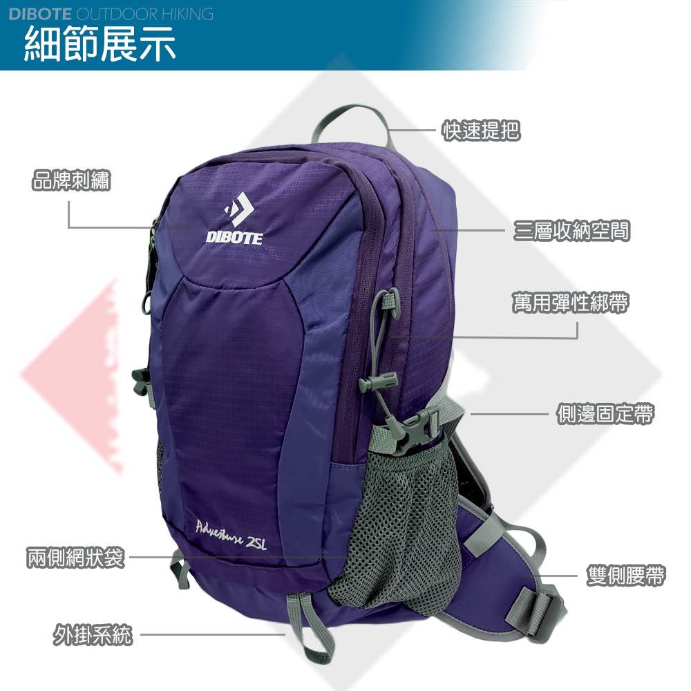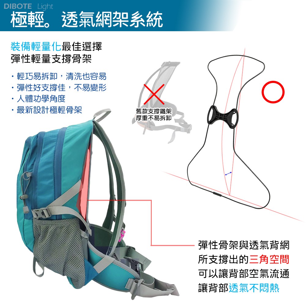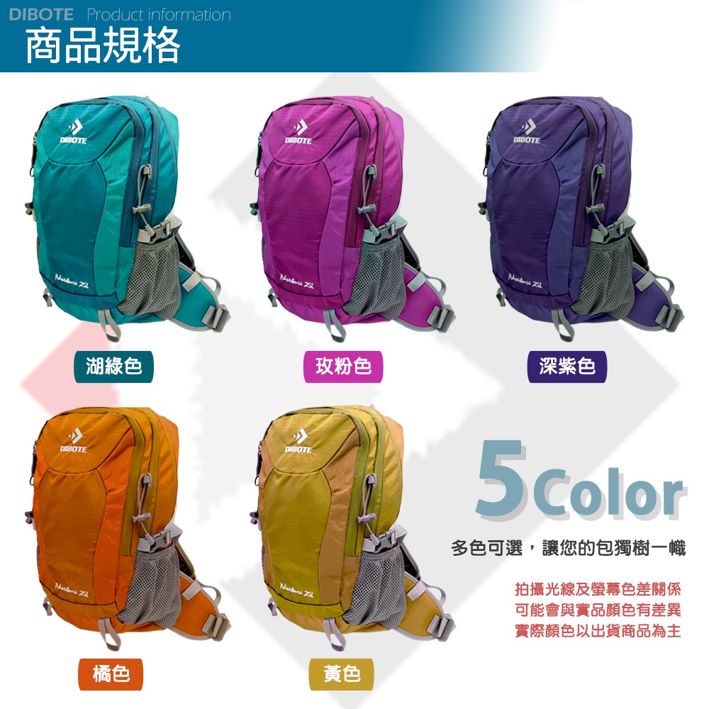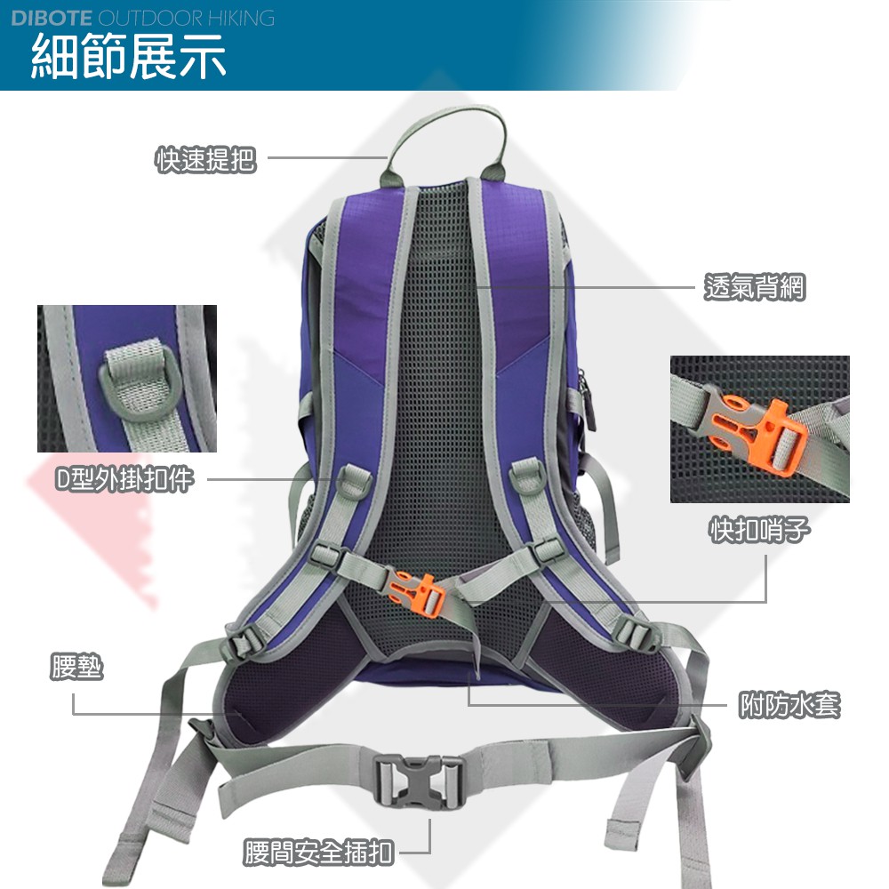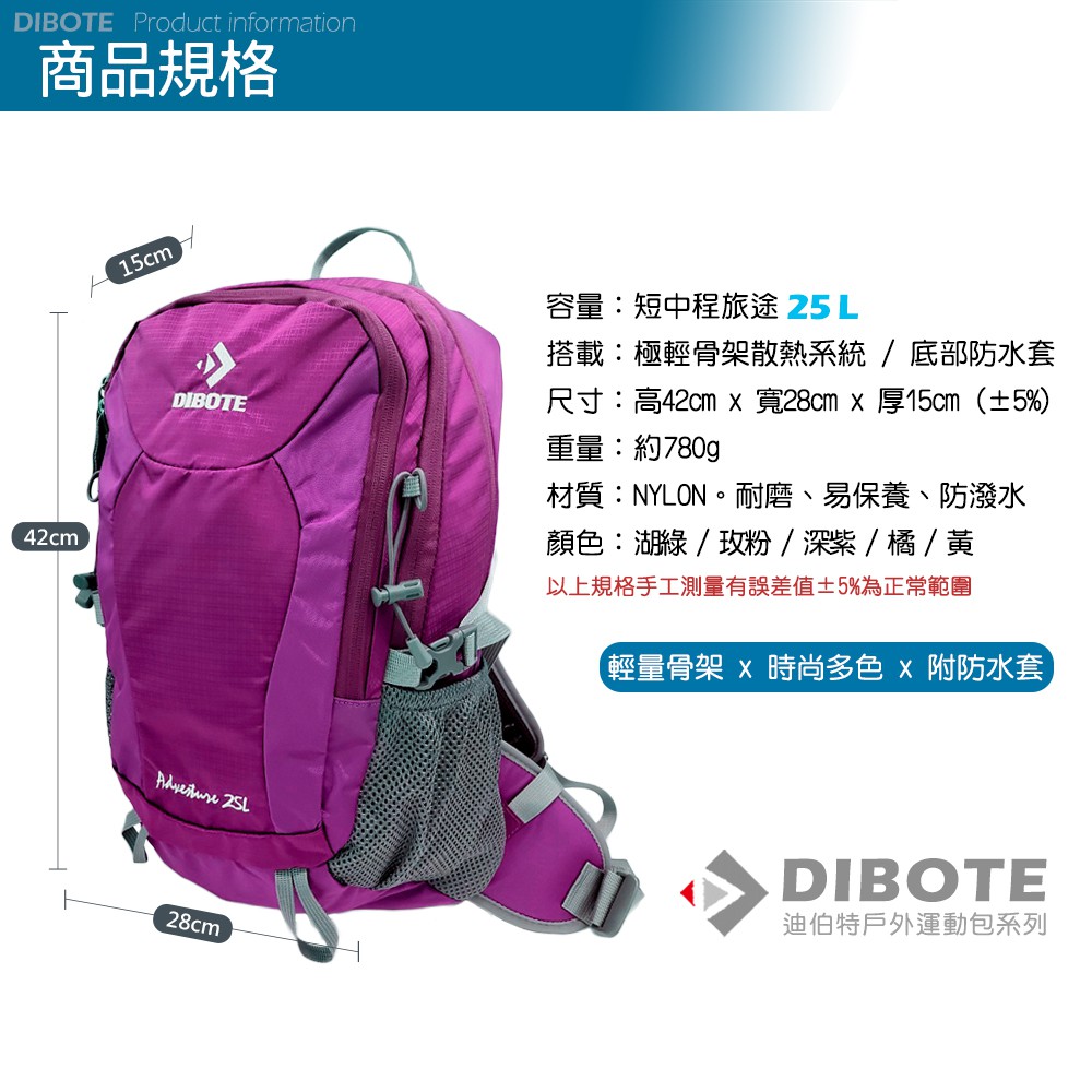 迪伯特DIBOTE 輕量登山包25L《名雪購物》透氣背架 附防水袋 登山包 後背包 登山露營旅遊適用姜黃|湖綠|玫粉|深紫|橘色Nayuki 名雪購物