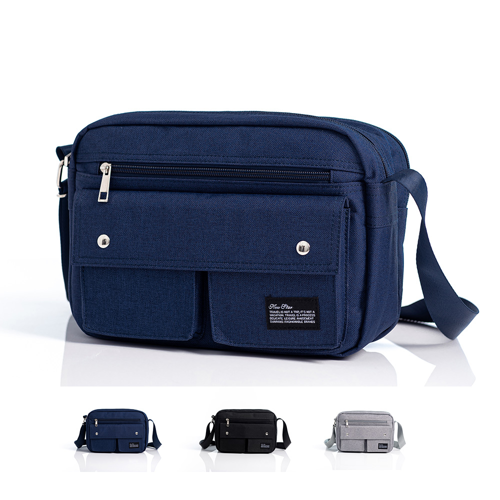NEW STAR 側背包 經典雙口袋雙層斜背包包 防水 男 女 男包 BL133黑色|深藍|灰色NEW STAR 包包