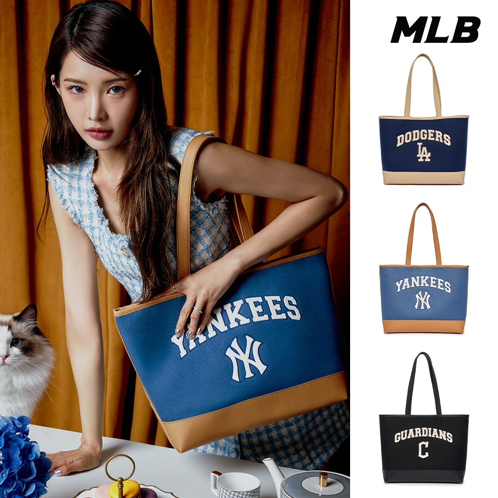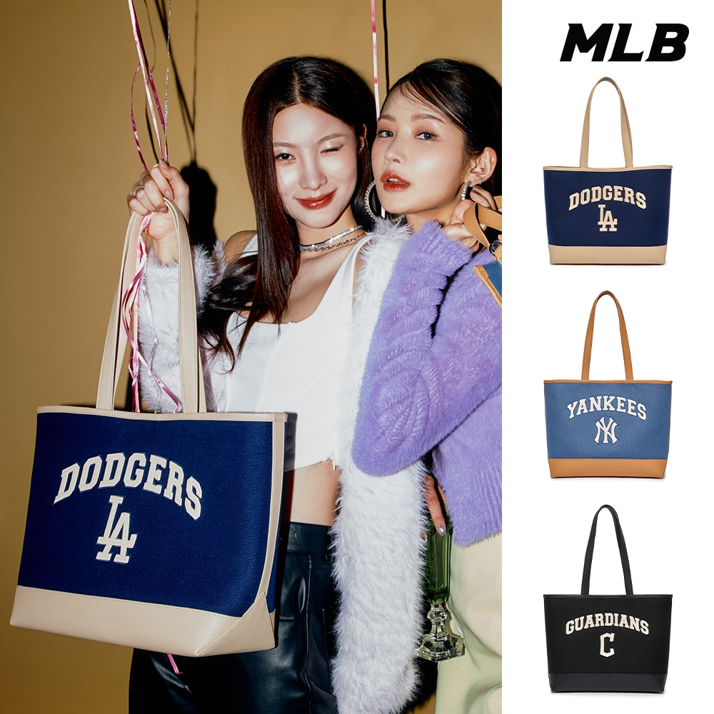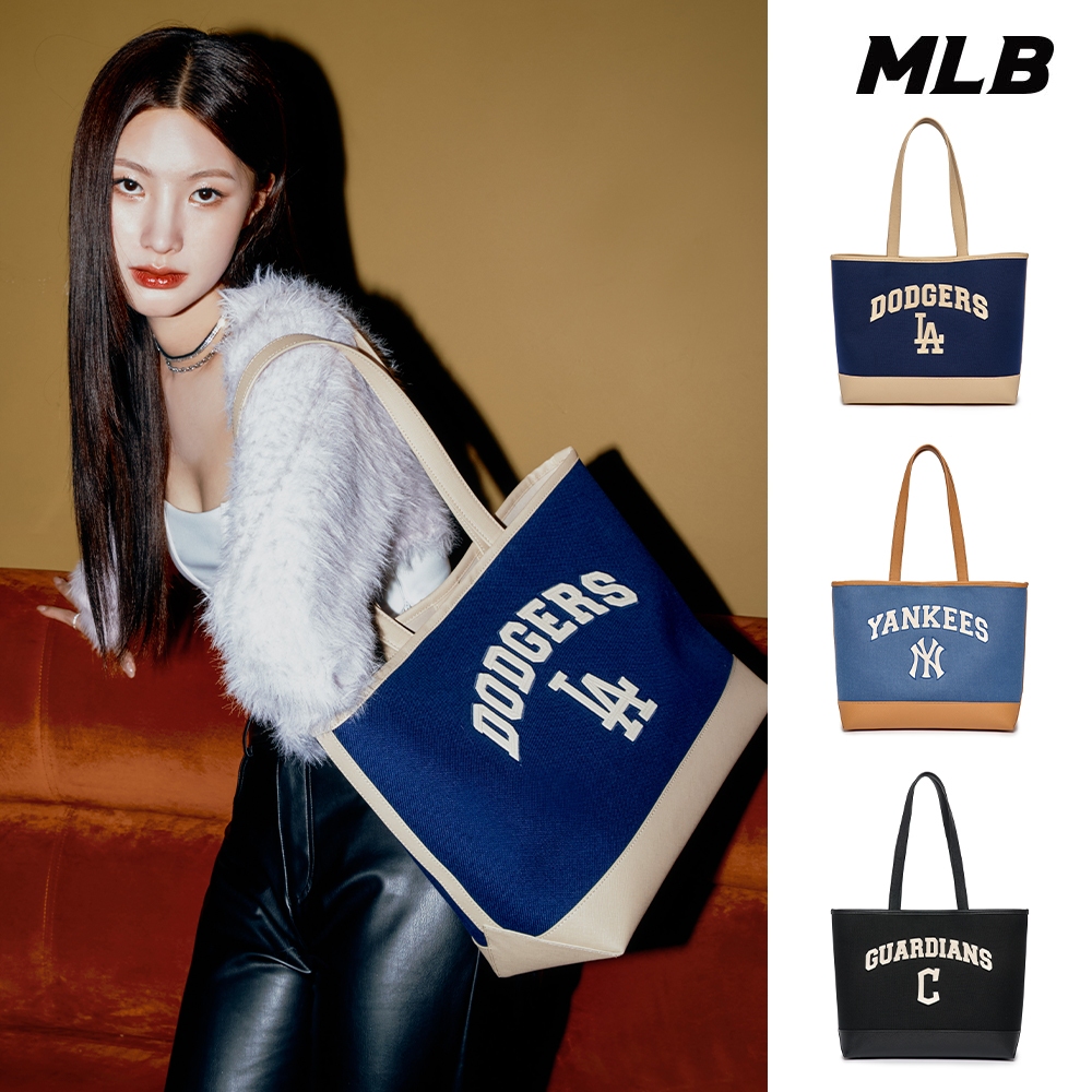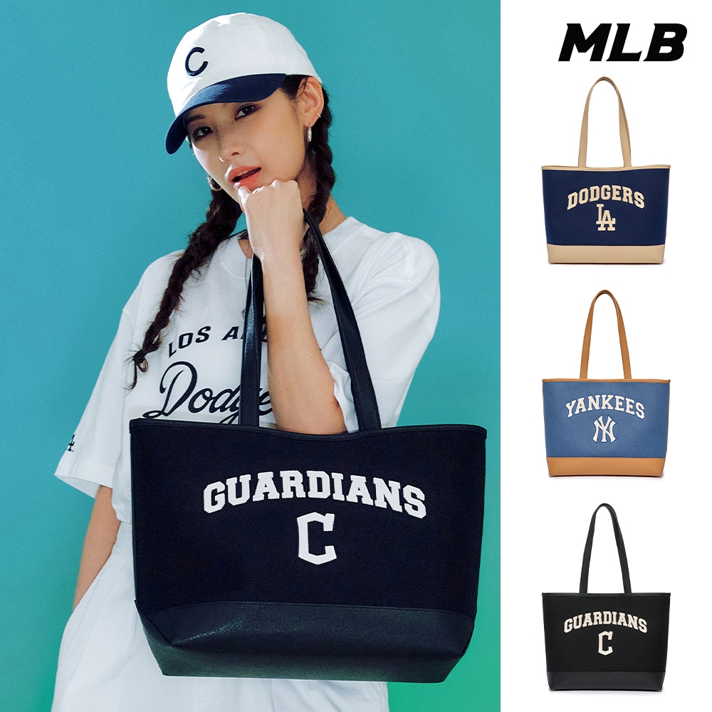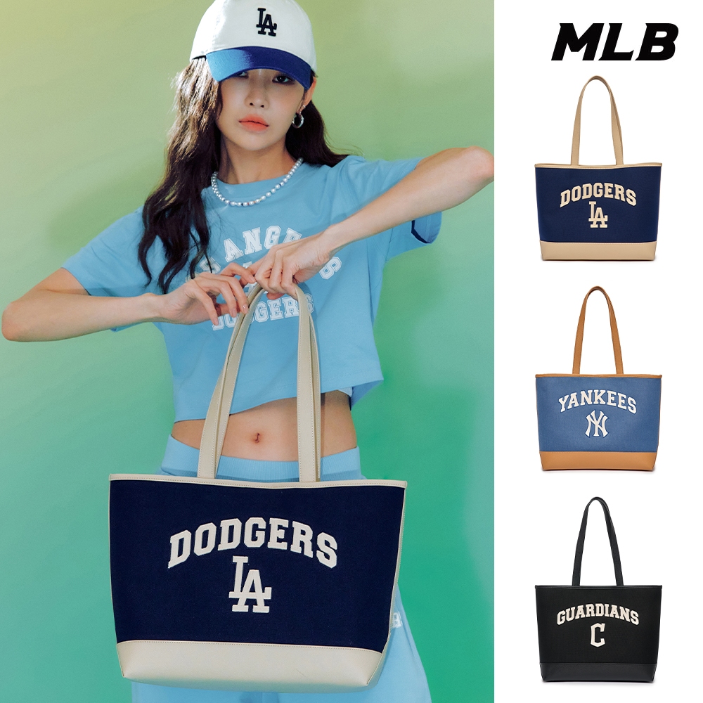 MLB 帆布肩背包 購物包 Varsity系列 道奇/守護者/洋基隊 (3AORL103N-三款任選)【官方旗艦店】C守護者隊_黑,F|LA道奇隊_藍,F|NY洋基隊_藍,FMLB KOREA 官方旗艦店