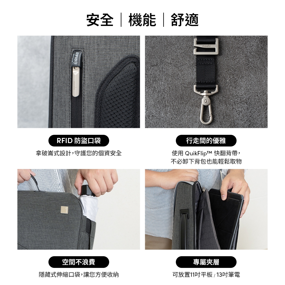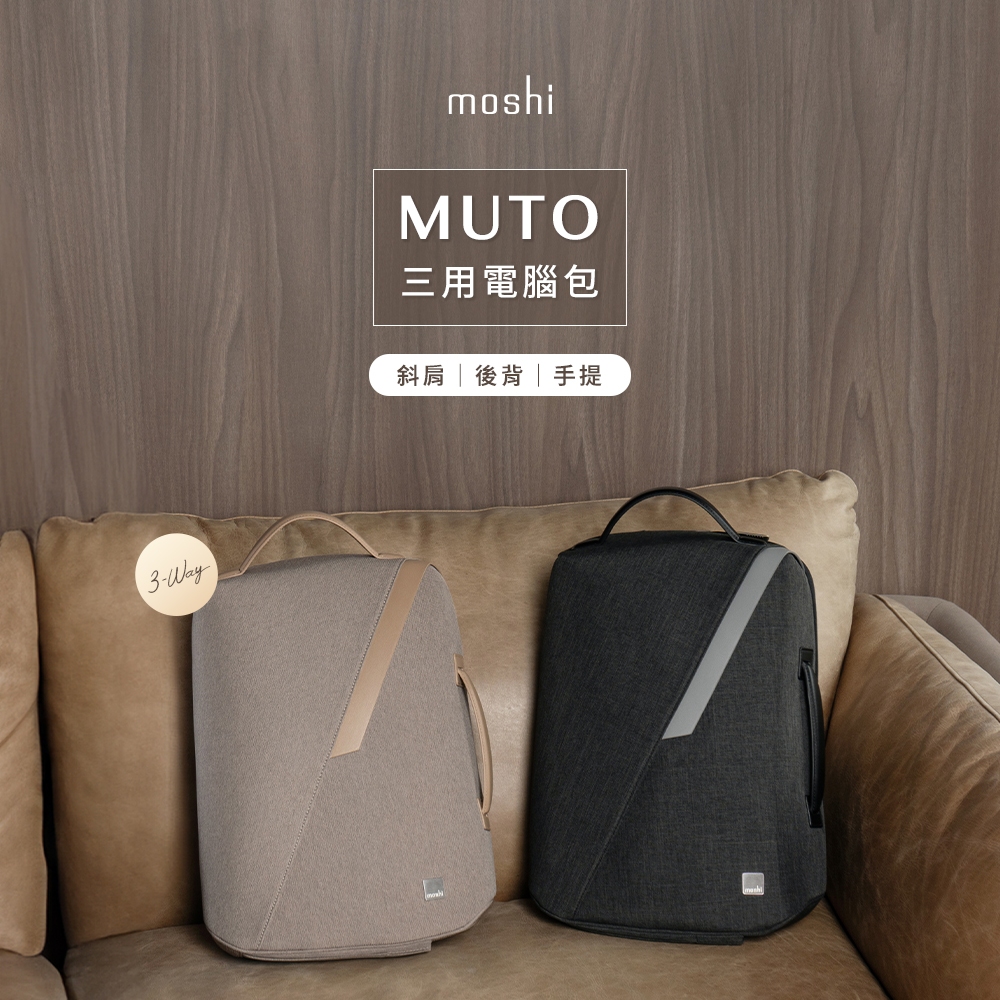 moshi Muto 斜肩背/後背/手提 三用電腦包 上班族推薦 公事包 後背包 手提包 三用包 商務用砂礫棕|板岩黑Laptop Bags & Casesmoshi 官方旗艦店
