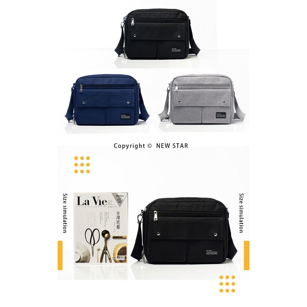 NEW STAR 斜背包 日系簡約雙層A4側背包包 大容量 防水 男 女 男包 BL161黑色|深藍|灰色NEW STAR 包包
