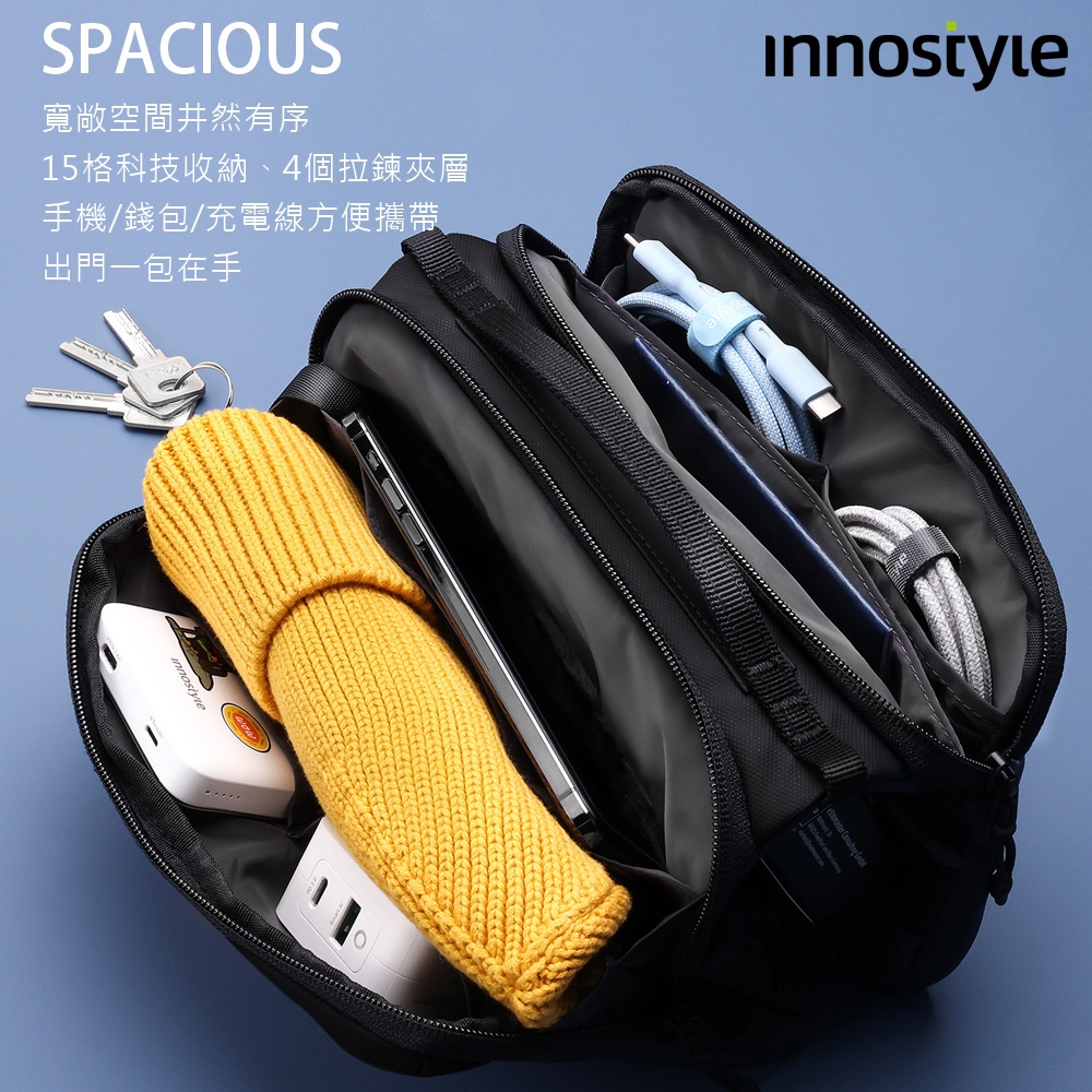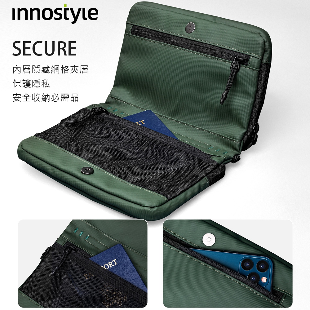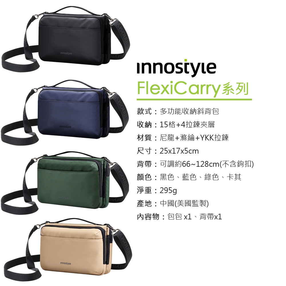 innostyle FlexiCarry系列 時尚科技收納側背包/肩背包/斜背包/小包/隨身包黑色|藍色|綠色|卡其PICKOGEN 台灣旗艦店