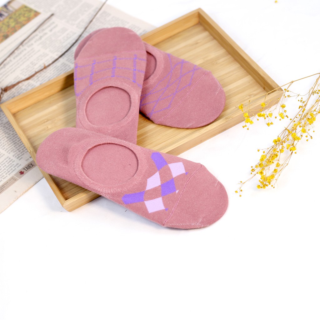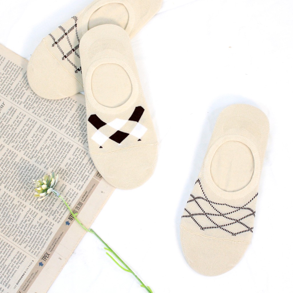 • PULO-純棉英倫格線隱形襪-3雙入 隱形船襪 後跟止滑 船襪 裸襪 純棉襪子 防滑襪 韓系穿搭 透氣