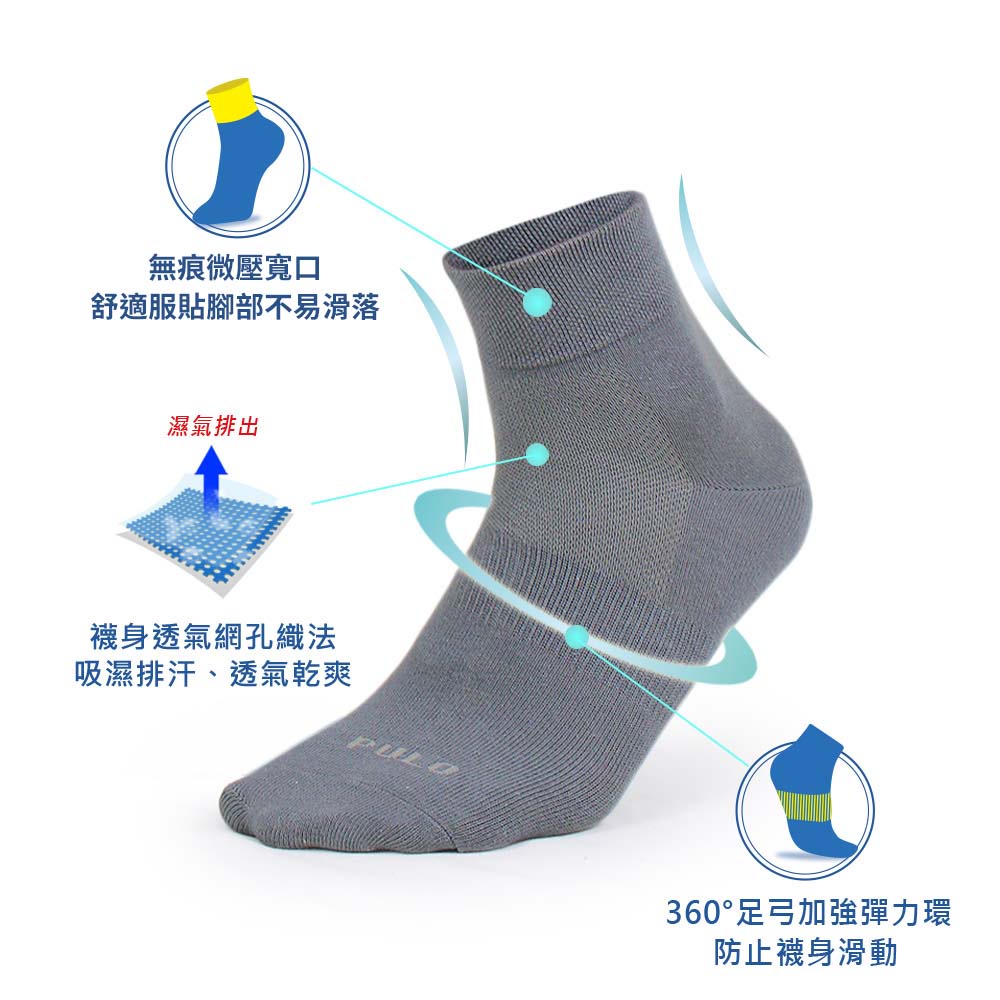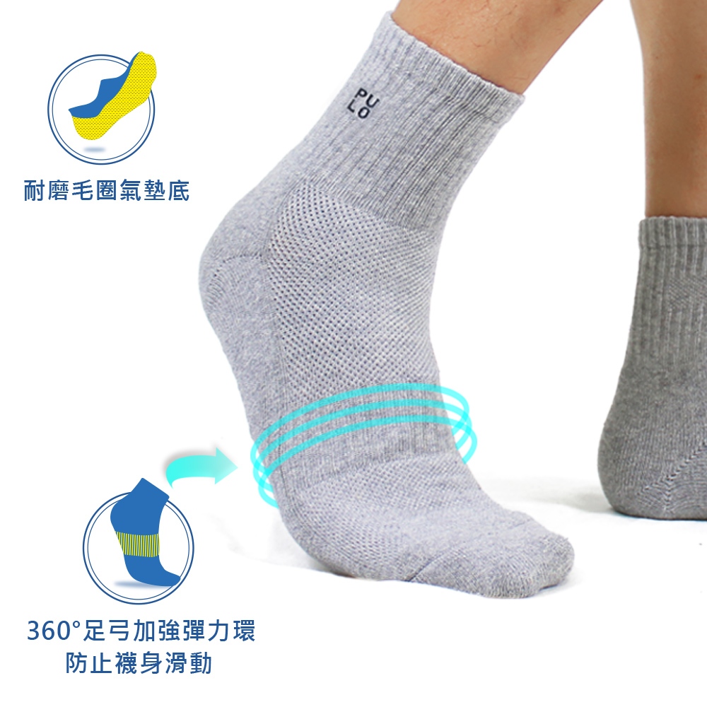 • PULO-慢跑機能氣墊短筒襪 4倍厚毛圈 吸溼排汗 厚底襪 想要厚底選這雙 運動襪 登山襪 慢跑襪 籃球襪適合久站