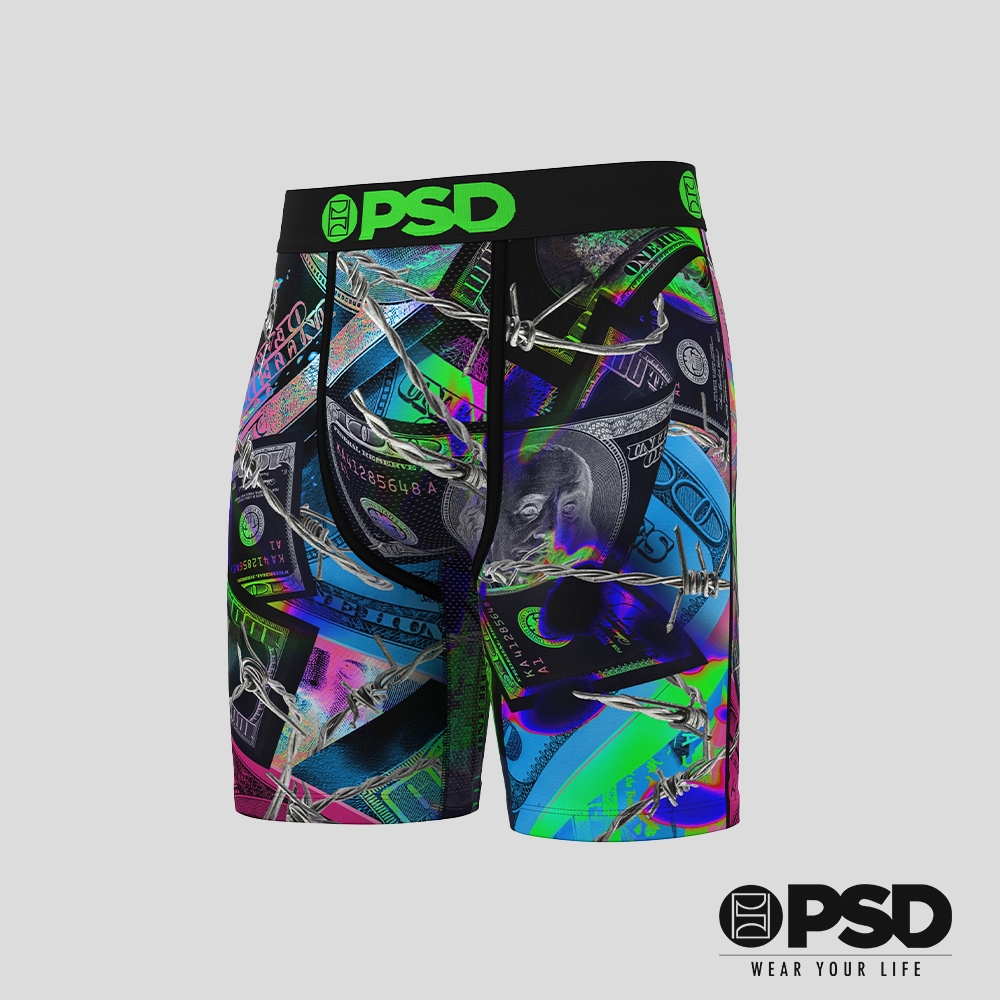 • 【PSD Underwear 官方旗艦店】MONEY- 平口四角褲-霓虹班哲明-黑色