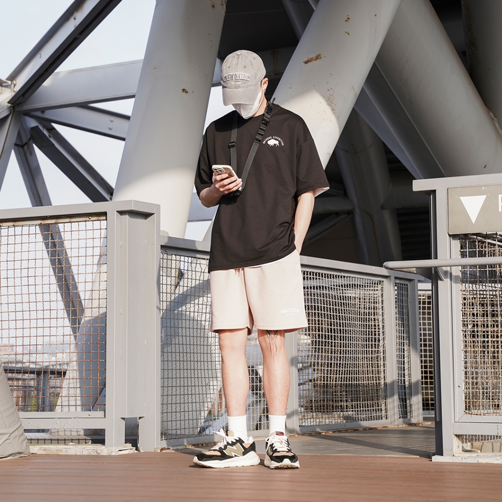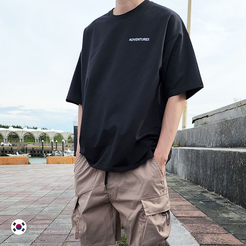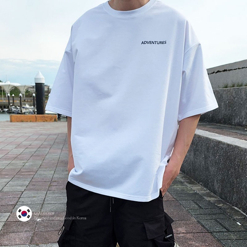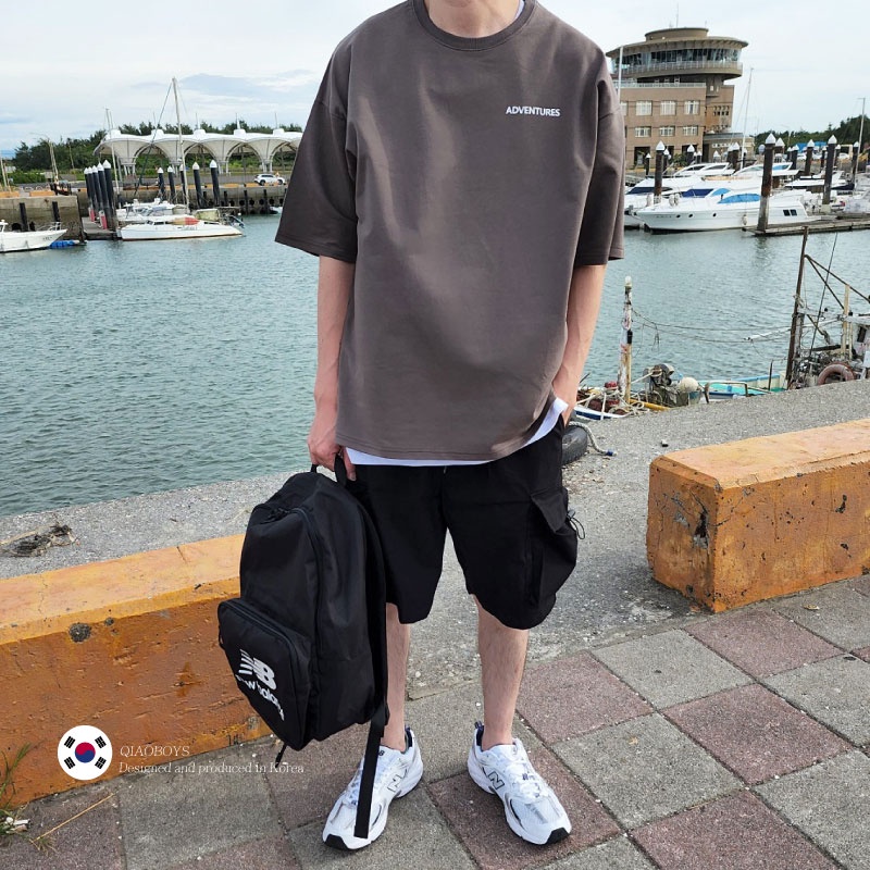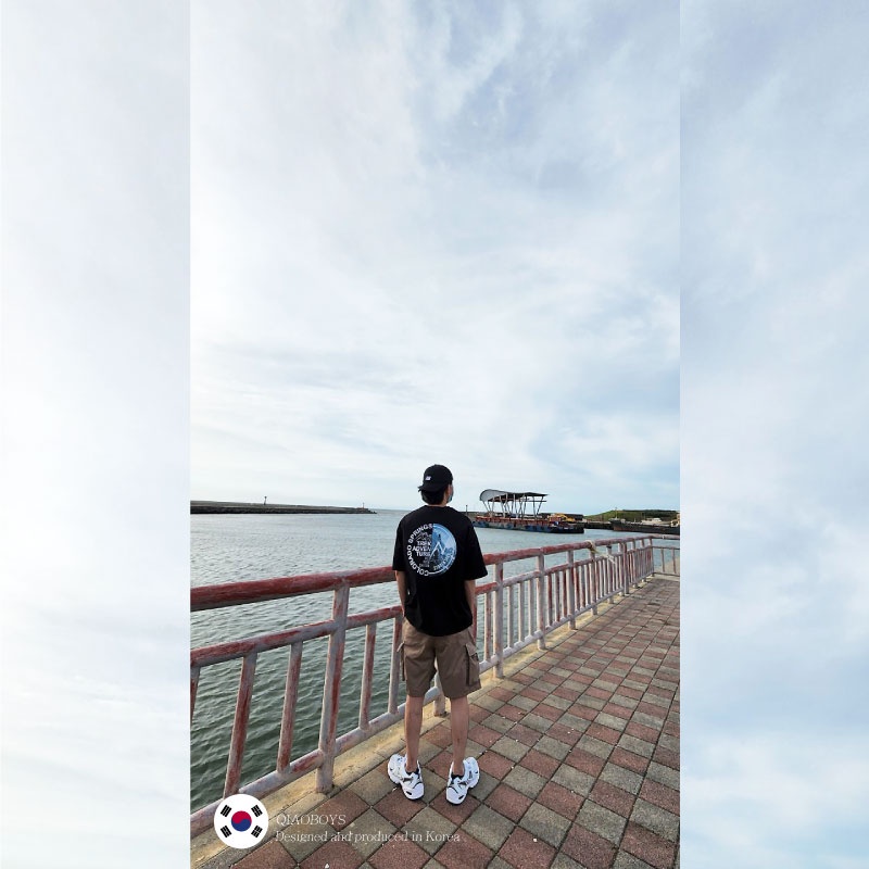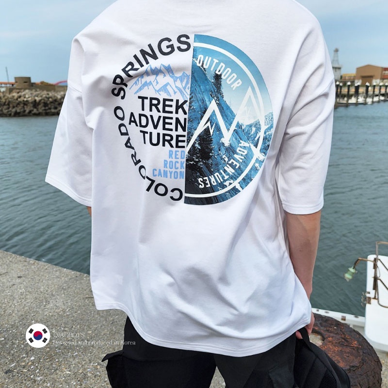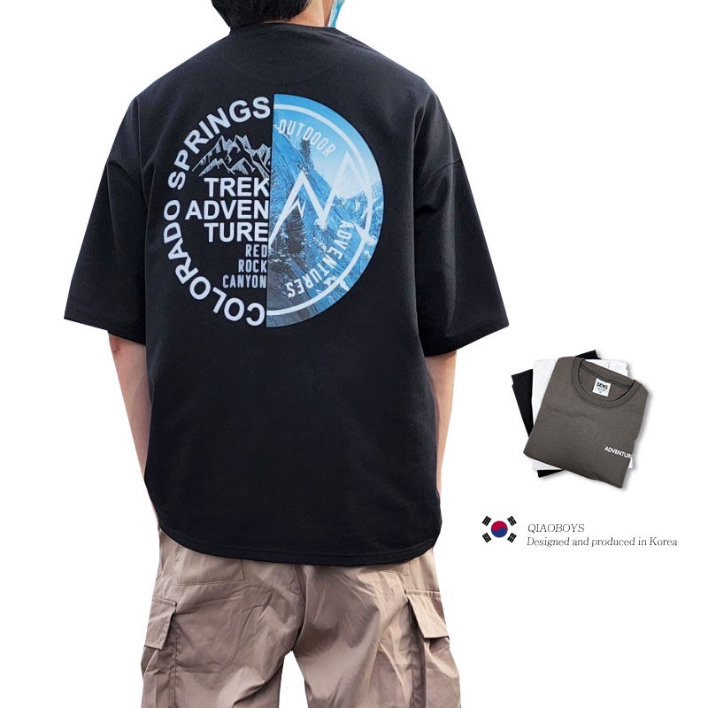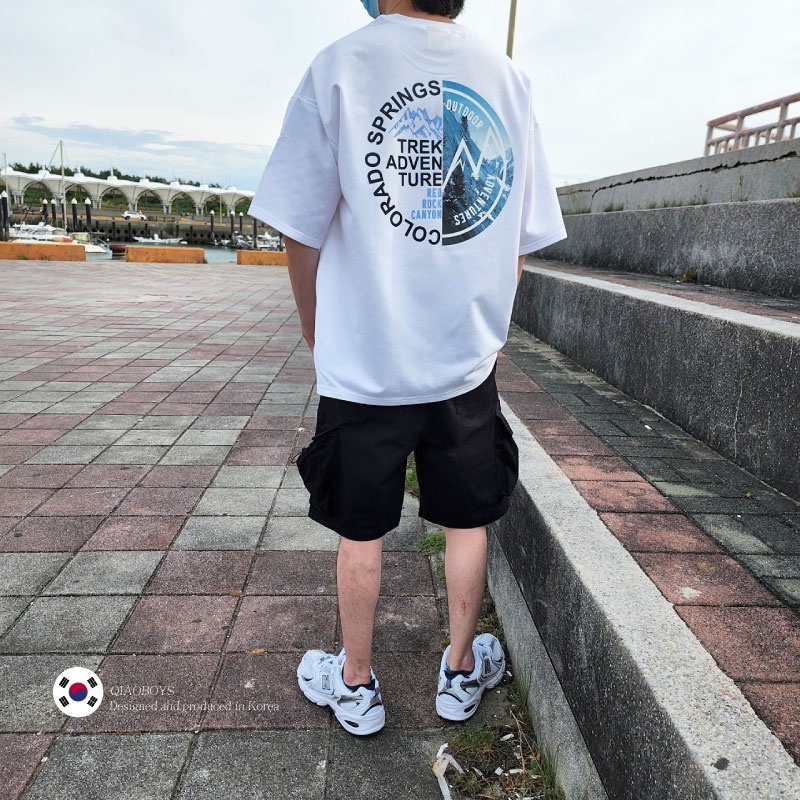 QIAO 韓國新貨 EXP猛牛 男人T恤 升級細絨棉 露營 野營 五分袖 落肩 寬鬆 短袖 情侶 韓國男裝 寬T 山脈T