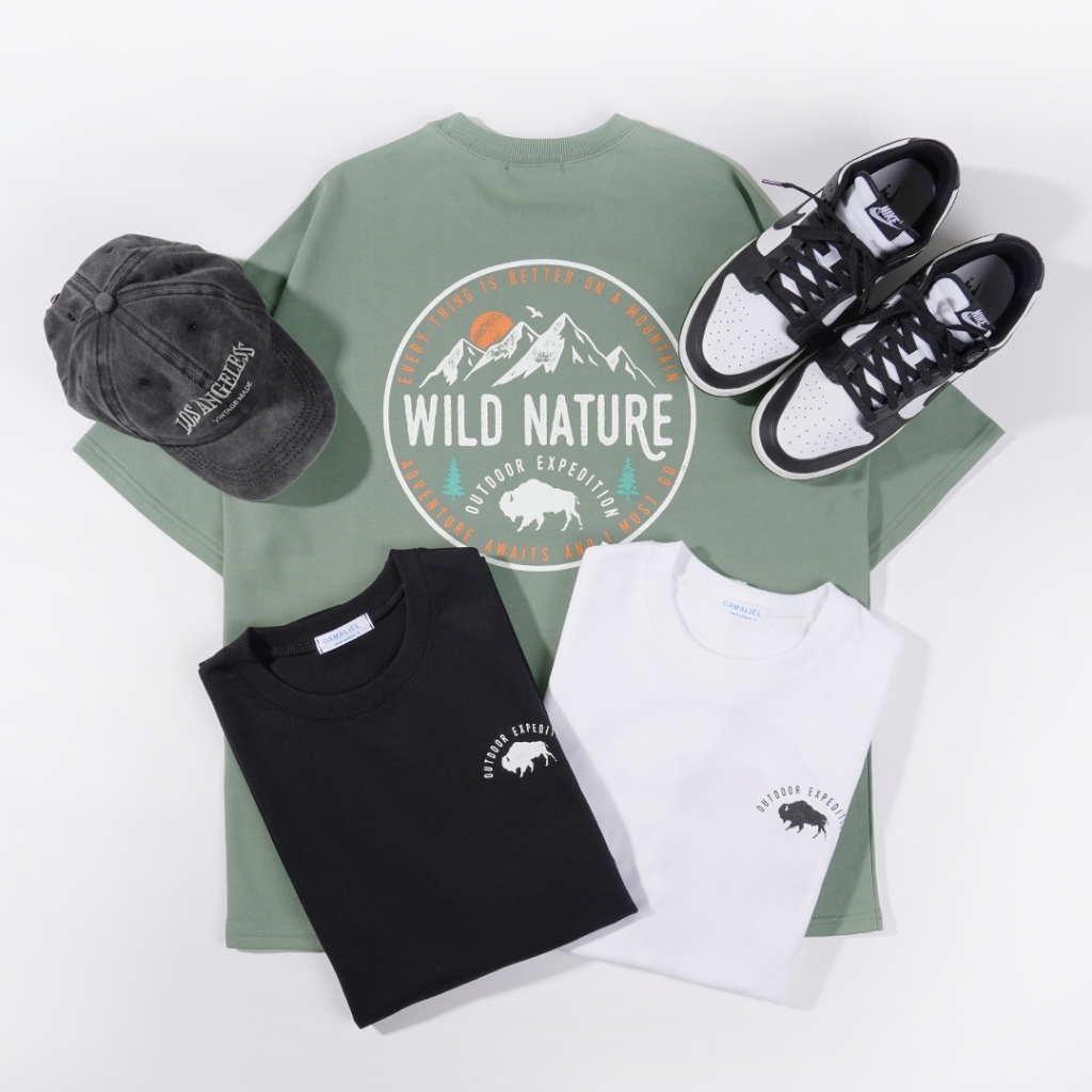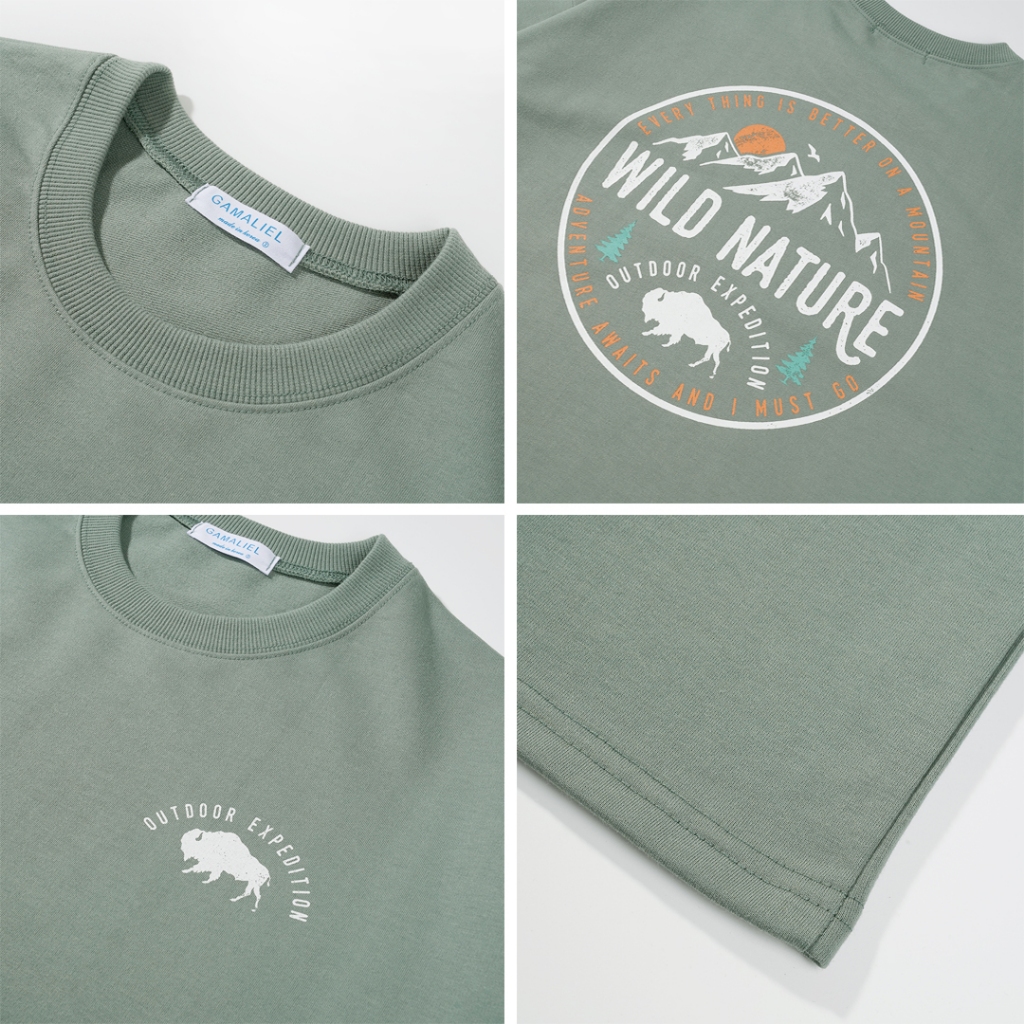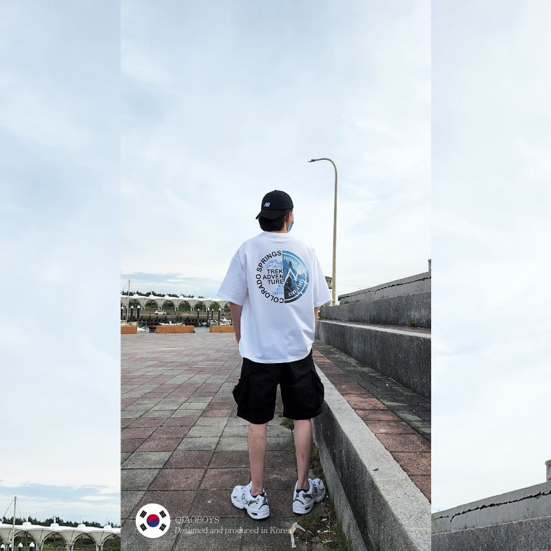 QIAO 韓國新貨 EXP猛牛 男人T恤 升級細絨棉 露營 野營 五分袖 落肩 寬鬆 短袖 情侶 韓國男裝 寬T 山脈T青石綠色,M|青石綠色,L|黑色,M|黑色,L|白色,M|白色,LT-ShirtsQIAO 潮人服飾旗艦店