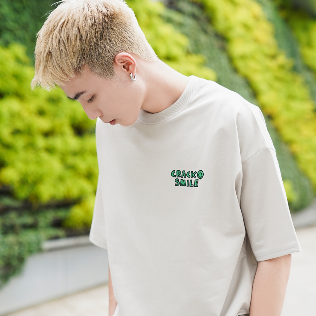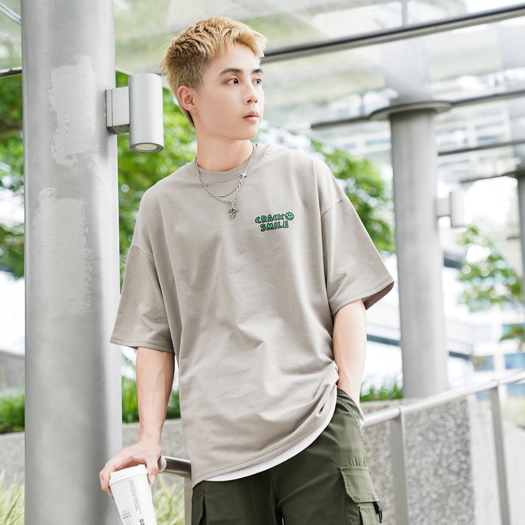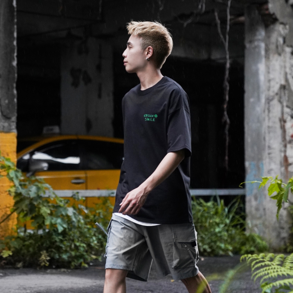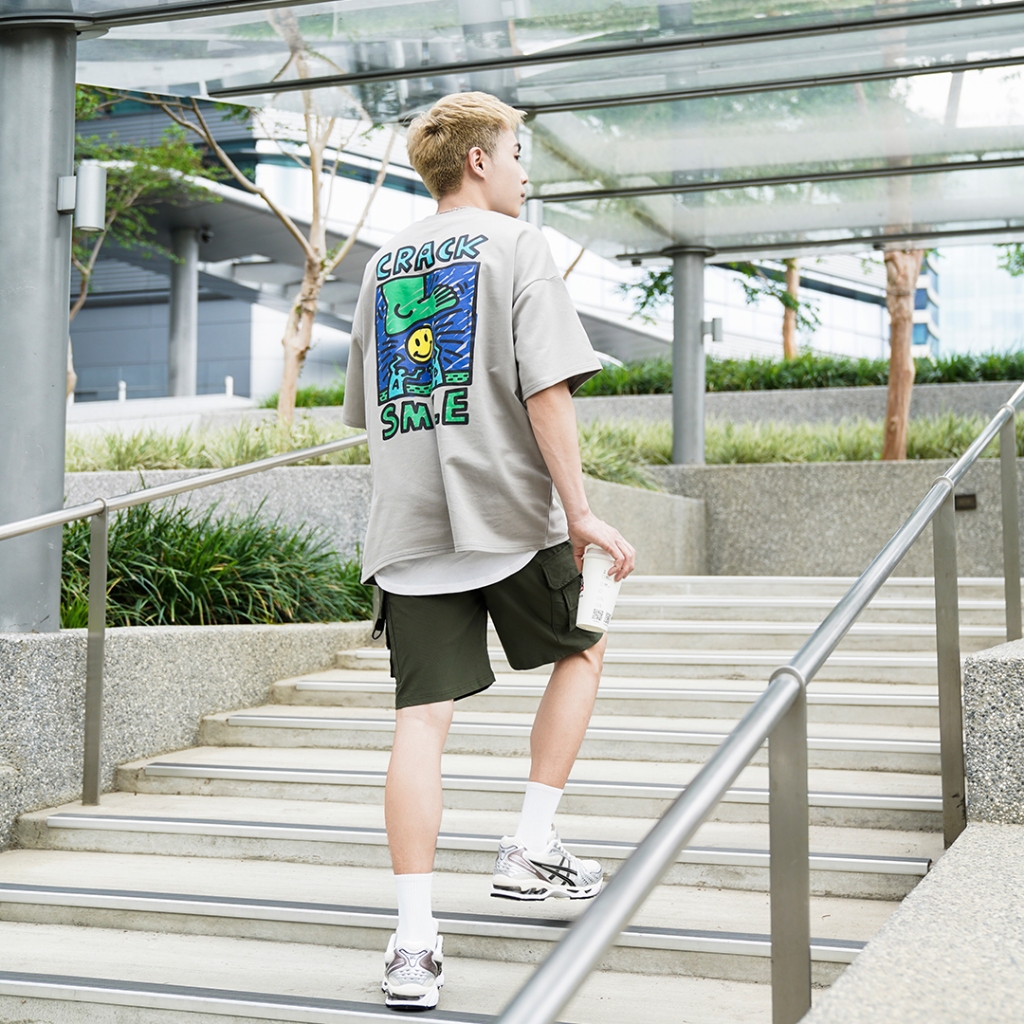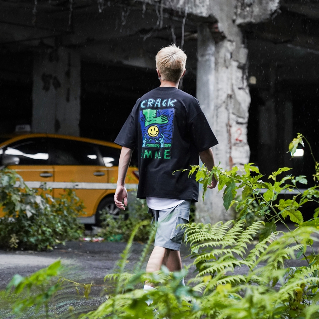 【QIAO】CRACK塗鴉 細絨棉 五分袖 落肩 寬鬆 短袖 情侶 韓國男裝 寬T 上衣 衣服 短袖男 情侶短T愛馬仕灰色,L|黑色,M|黑色,L|白色,M|白色,L|灰杏色,M|灰杏色,L|愛馬仕灰色,MT-ShirtsQIAO 潮人服飾旗艦店