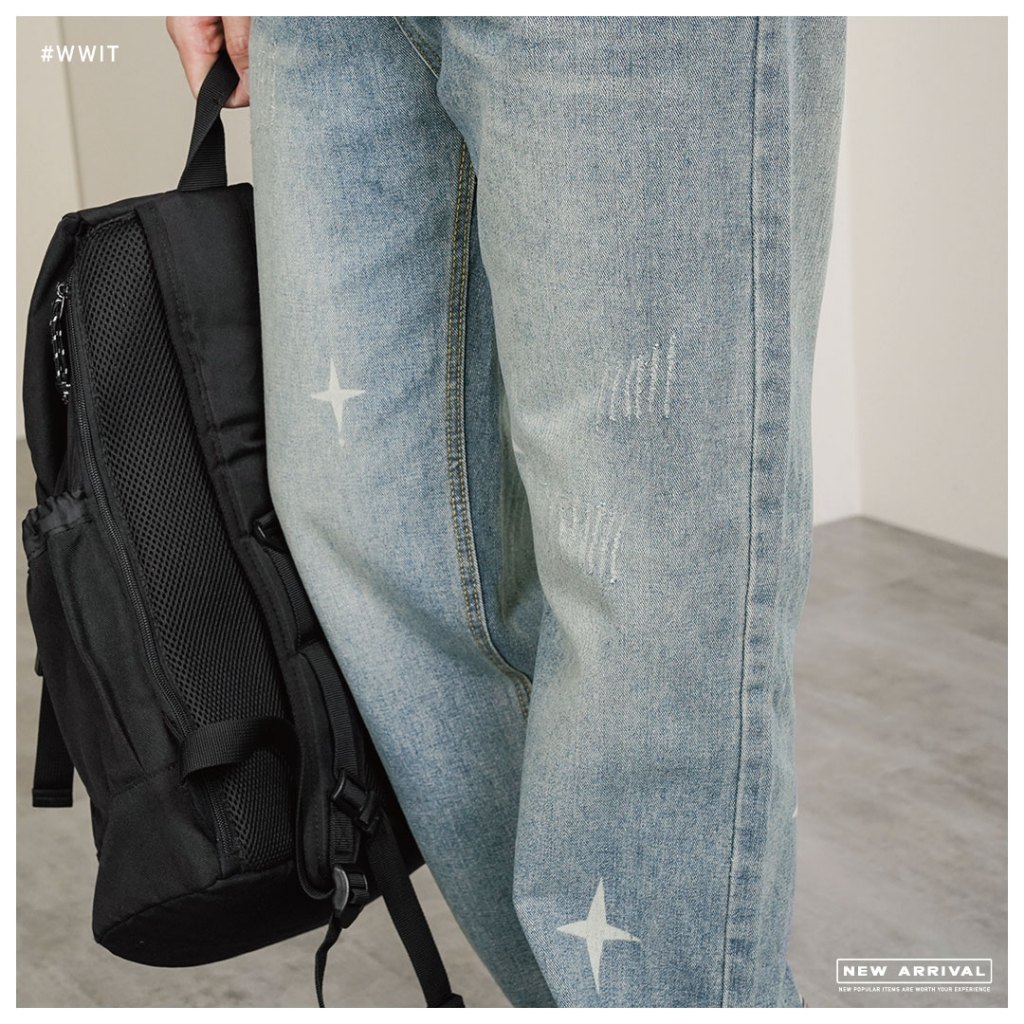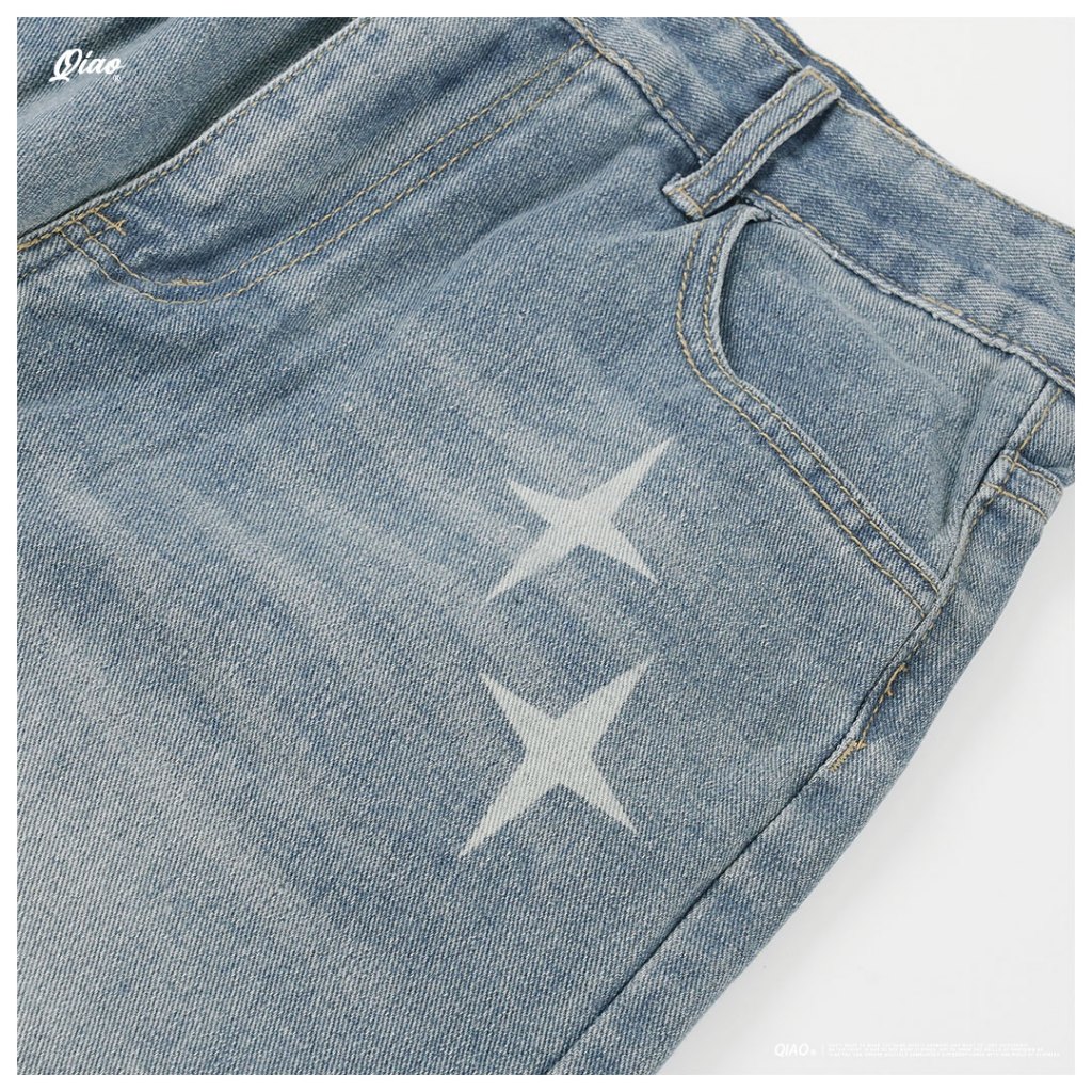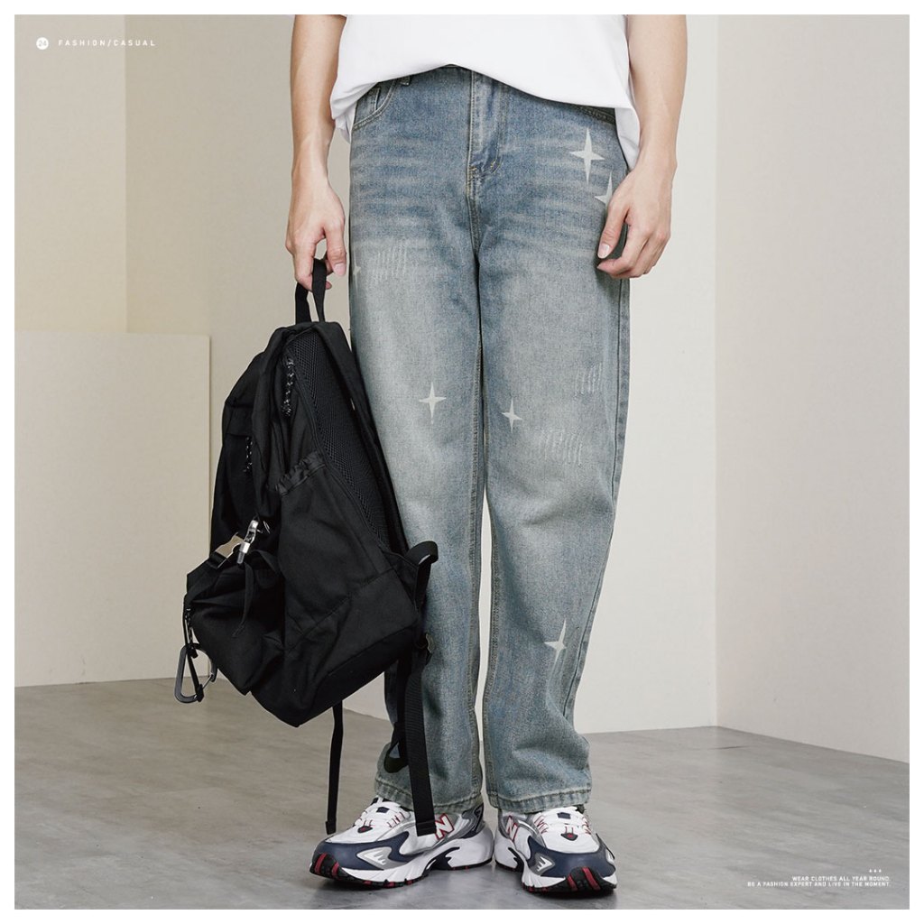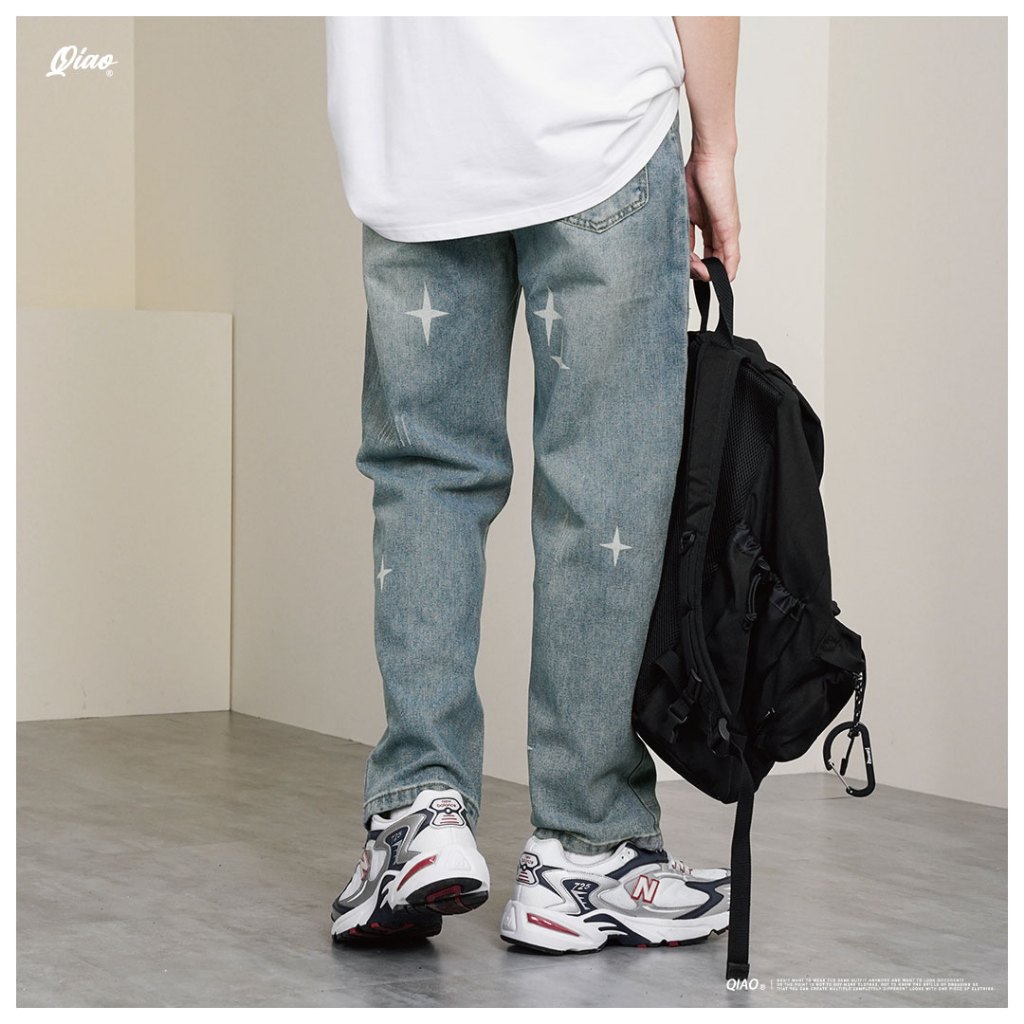 【QIAO】星芒 牛仔直筒褲 水洗刷色 印刷 基礎 日系街頭 長褲 休閒長褲 牛仔褲【MA2K60385】M|L|XL|2XLQIAO 潮人服飾旗艦店