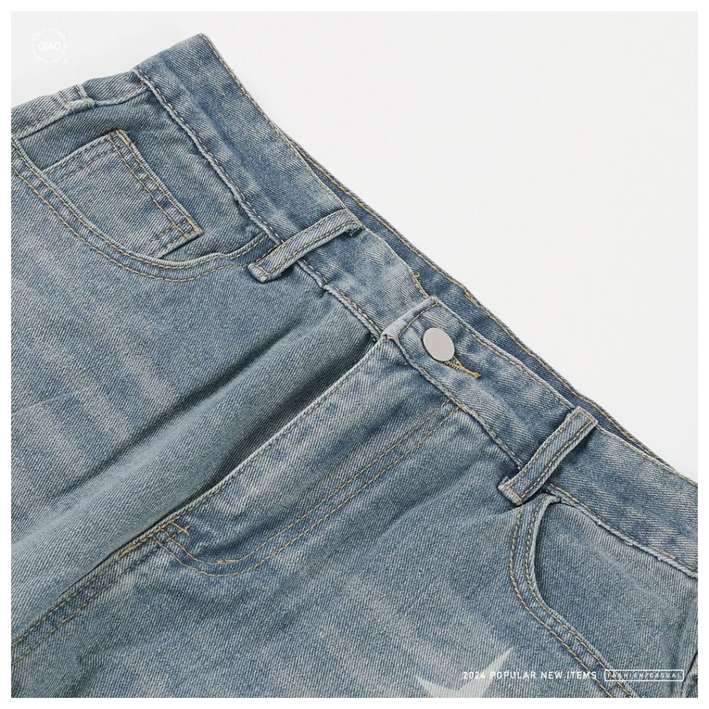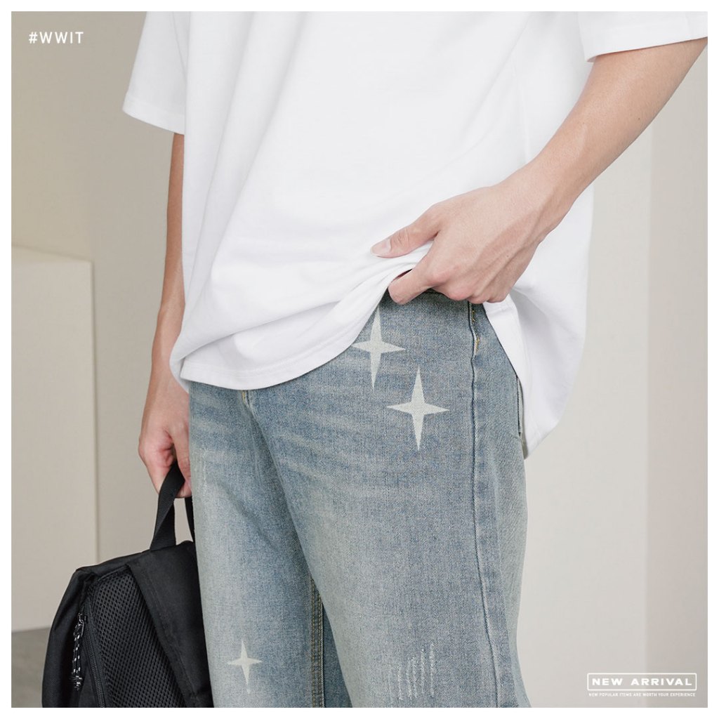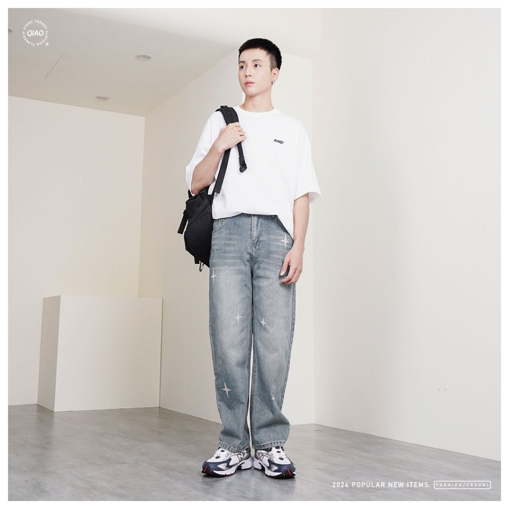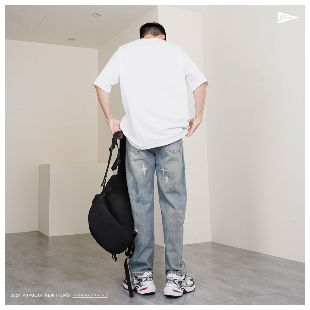 【QIAO】星芒 牛仔直筒褲 水洗刷色 印刷 基礎 日系街頭 長褲 休閒長褲 牛仔褲【MA2K60385】M|L|XL|2XLQIAO 潮人服飾旗艦店