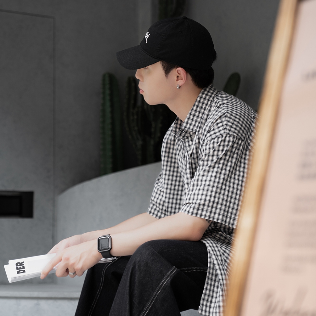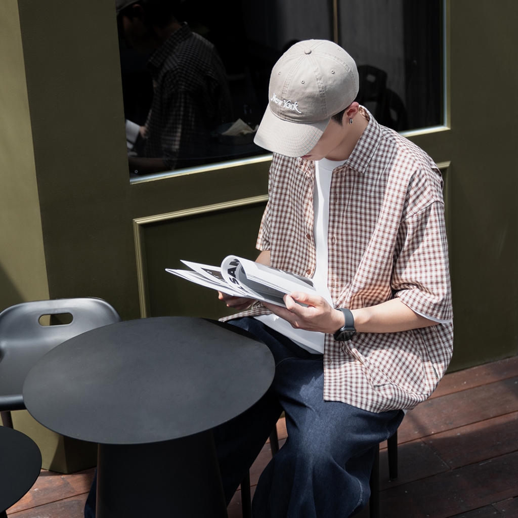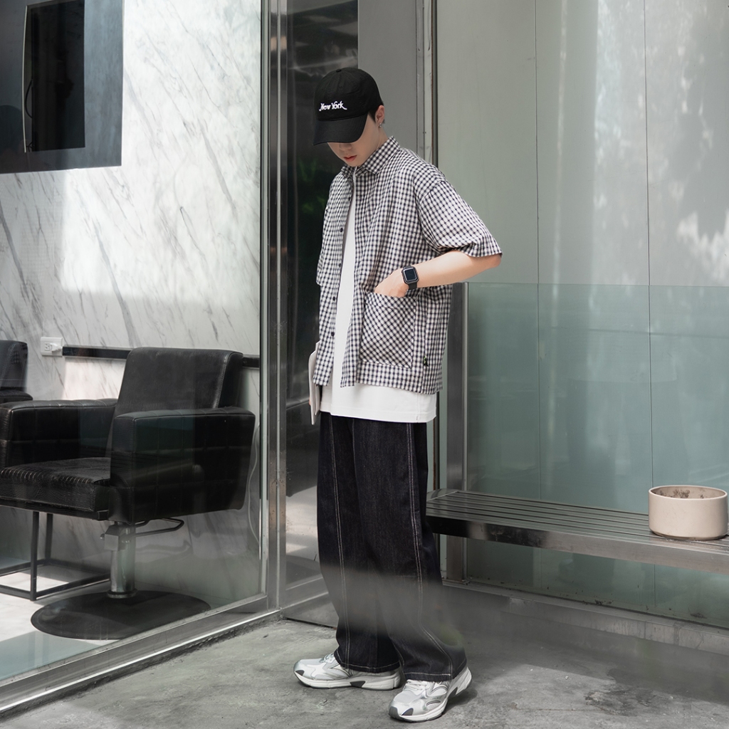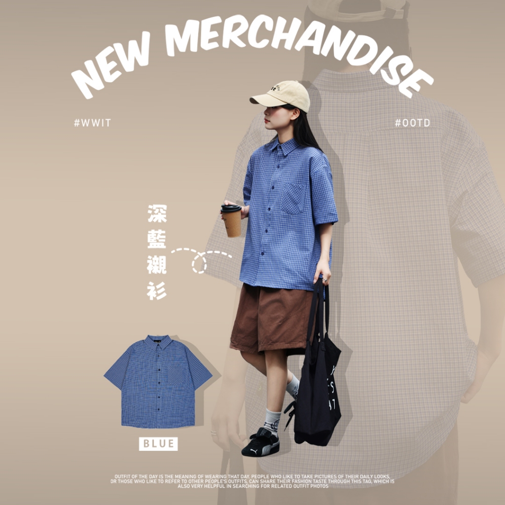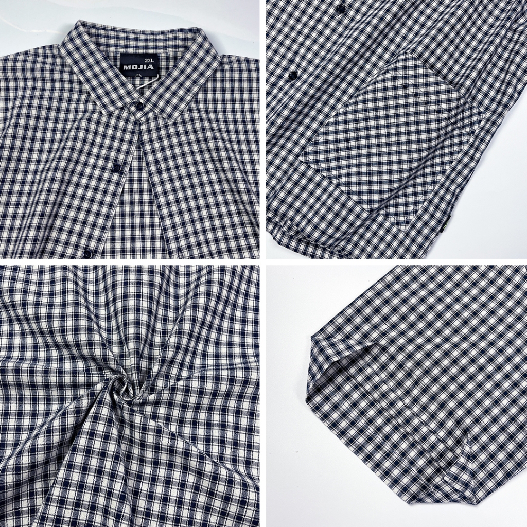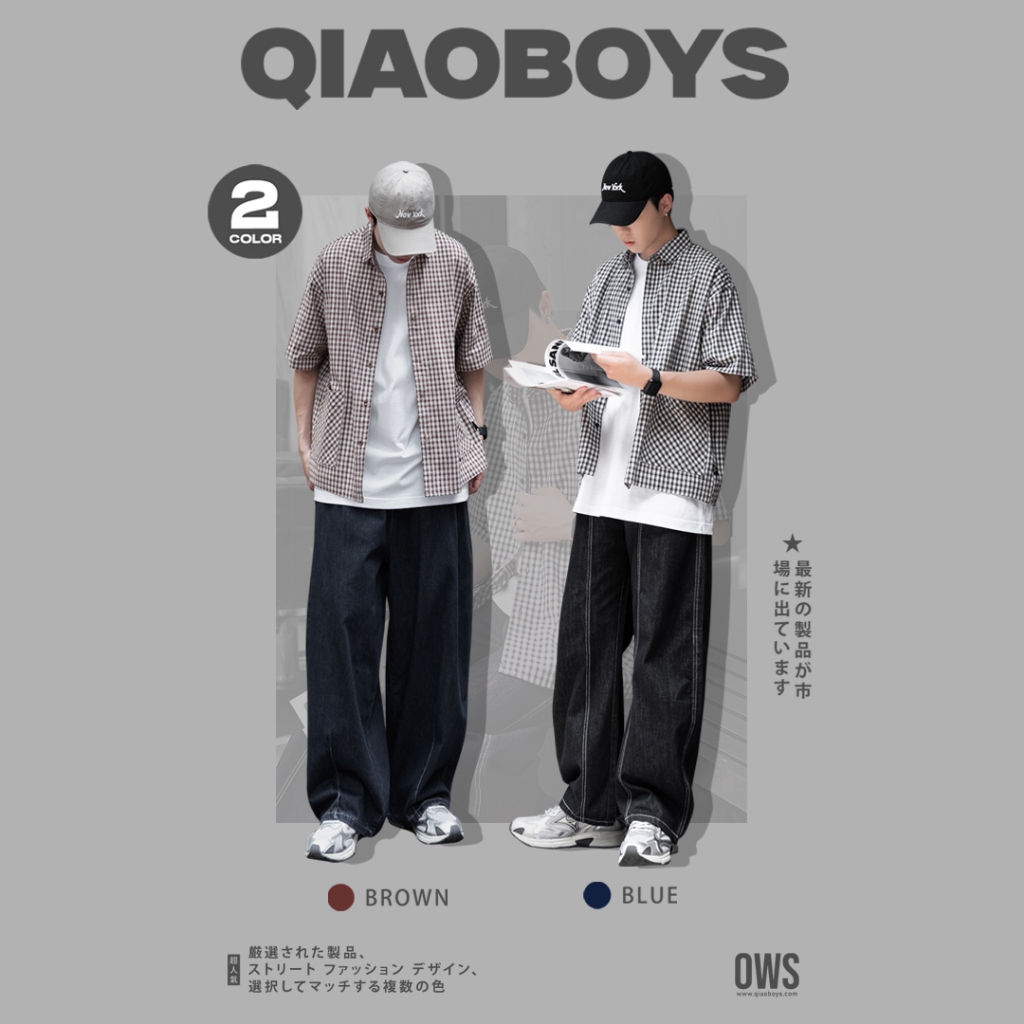 【QIAO】日系藍調 小格紋襯衫 學院風襯衫 短袖襯衫 情侶裝 寬鬆襯衫 格子襯衫 襯衫 男友風襯衫 夏季襯衫男L|XL|2XL|MShirtsQIAO 潮人服飾旗艦店