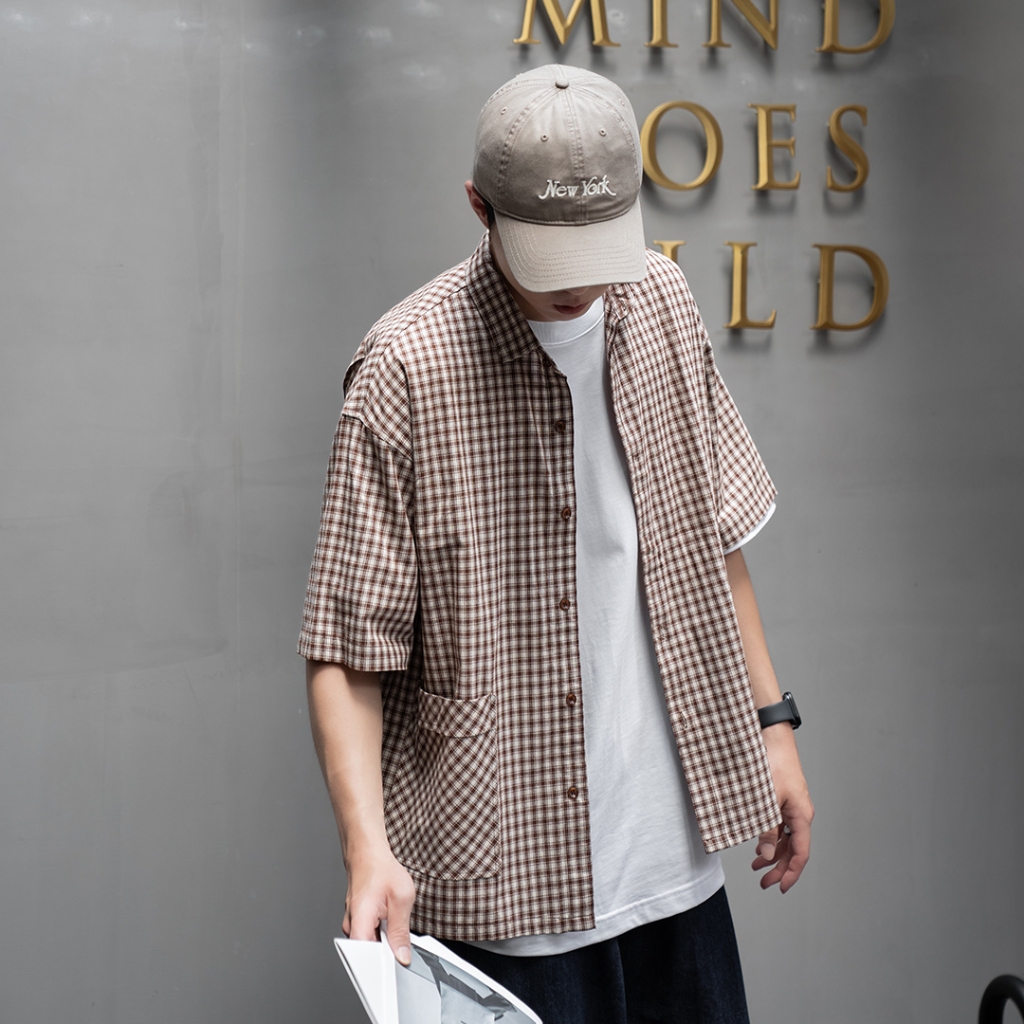 【QIAO】輕挺牛津 細格紋 短袖襯衫 寬鬆襯衫 格子襯衫 襯衫 穿搭 男友風襯衫 夏季襯衫男 休閒襯衫 襯衫男咖色,M|咖色,L|咖色,XL|咖色,2XL|藍色,M|藍色,L|藍色,XL|藍色,2XLShirtsQIAO 潮人服飾旗艦店