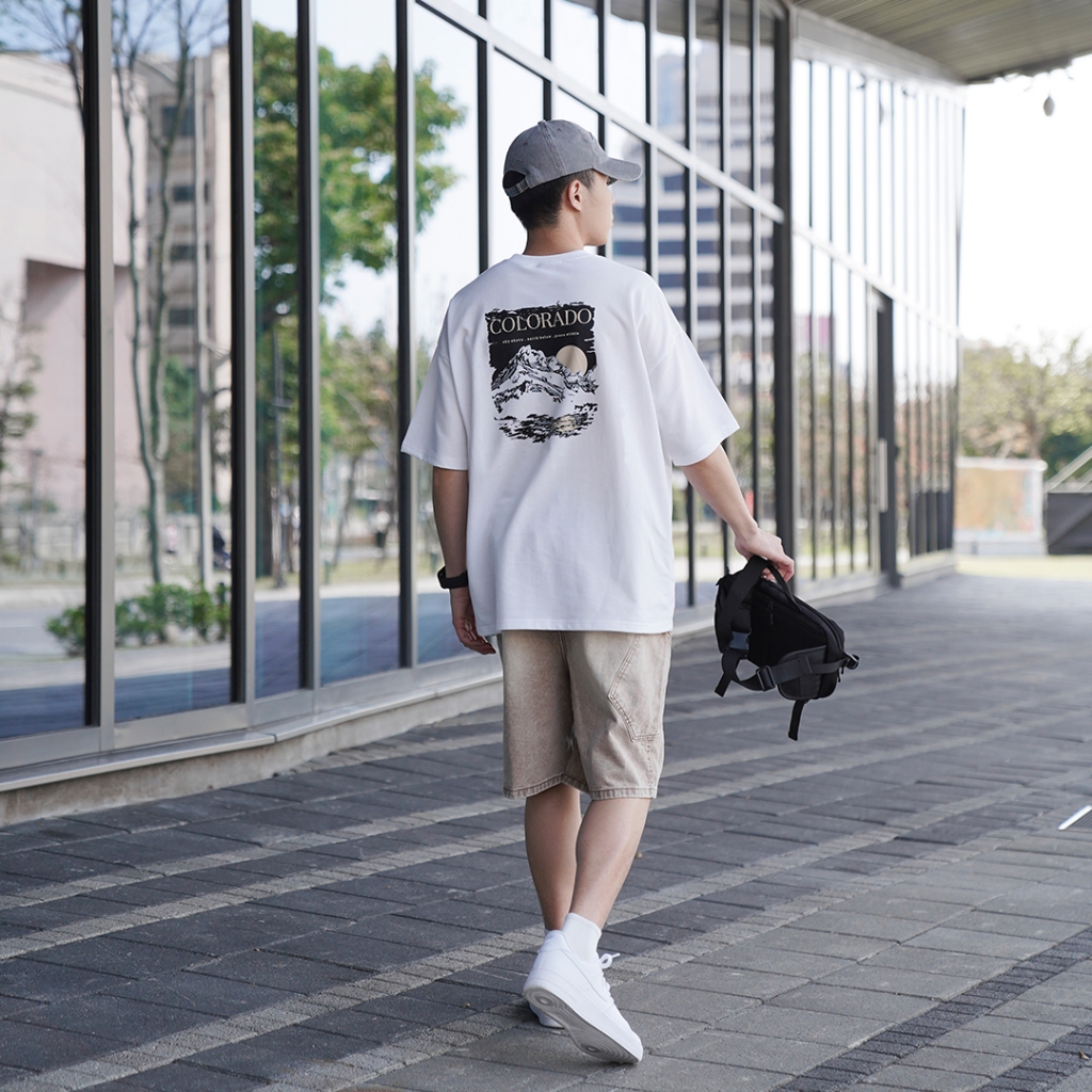 QIAO COLORADO 靜謐山脈 細絨棉 落肩 短T 寬鬆T 情侶 穿搭 日系 短袖上衣 圓領上衣 蓋屁股上衣黑色,M|黑色,L|白色,M|白色,L|大地色,M|大地色,LT-ShirtsQIAO 潮人服飾旗艦店