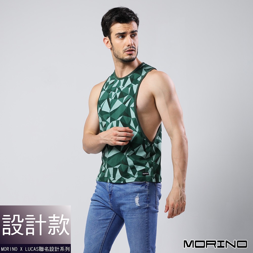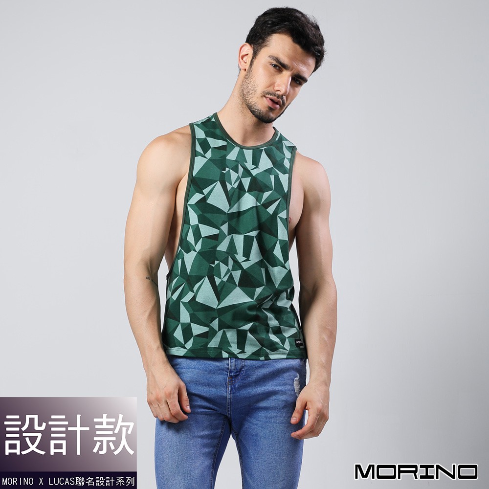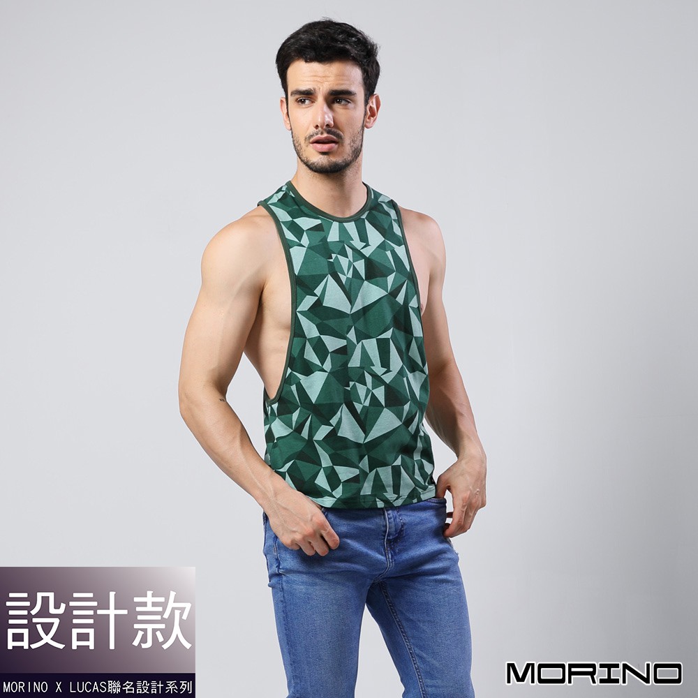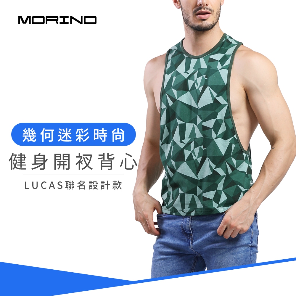 【MORINO】幾何迷彩時尚健身開衩背心_綠色 MO5111型男潮男 健身 男背心 質感設計 引領風潮 LUCAS聯名款M 綠色|L 綠色|XL 綠色TanksMORINO摩力諾 時尚機能旗艦館 男女童內著