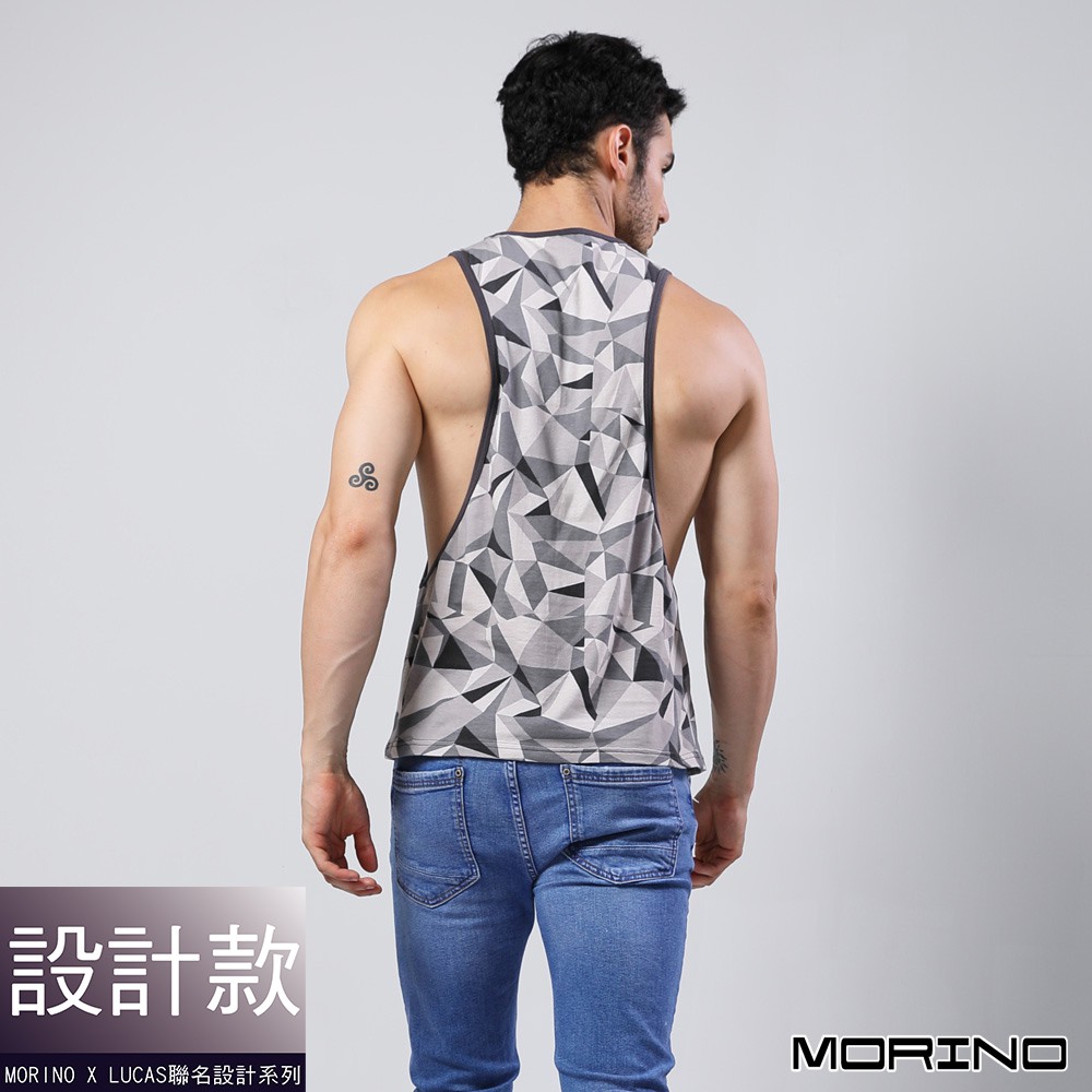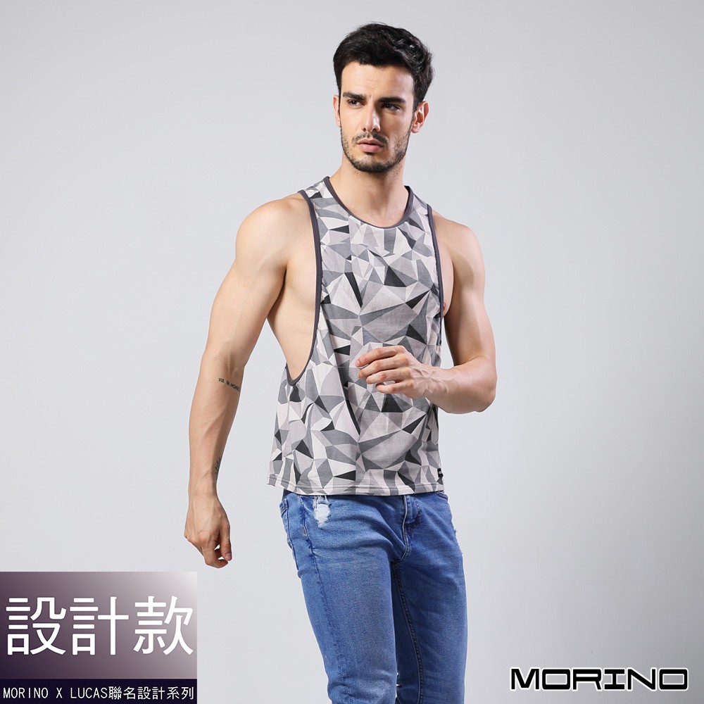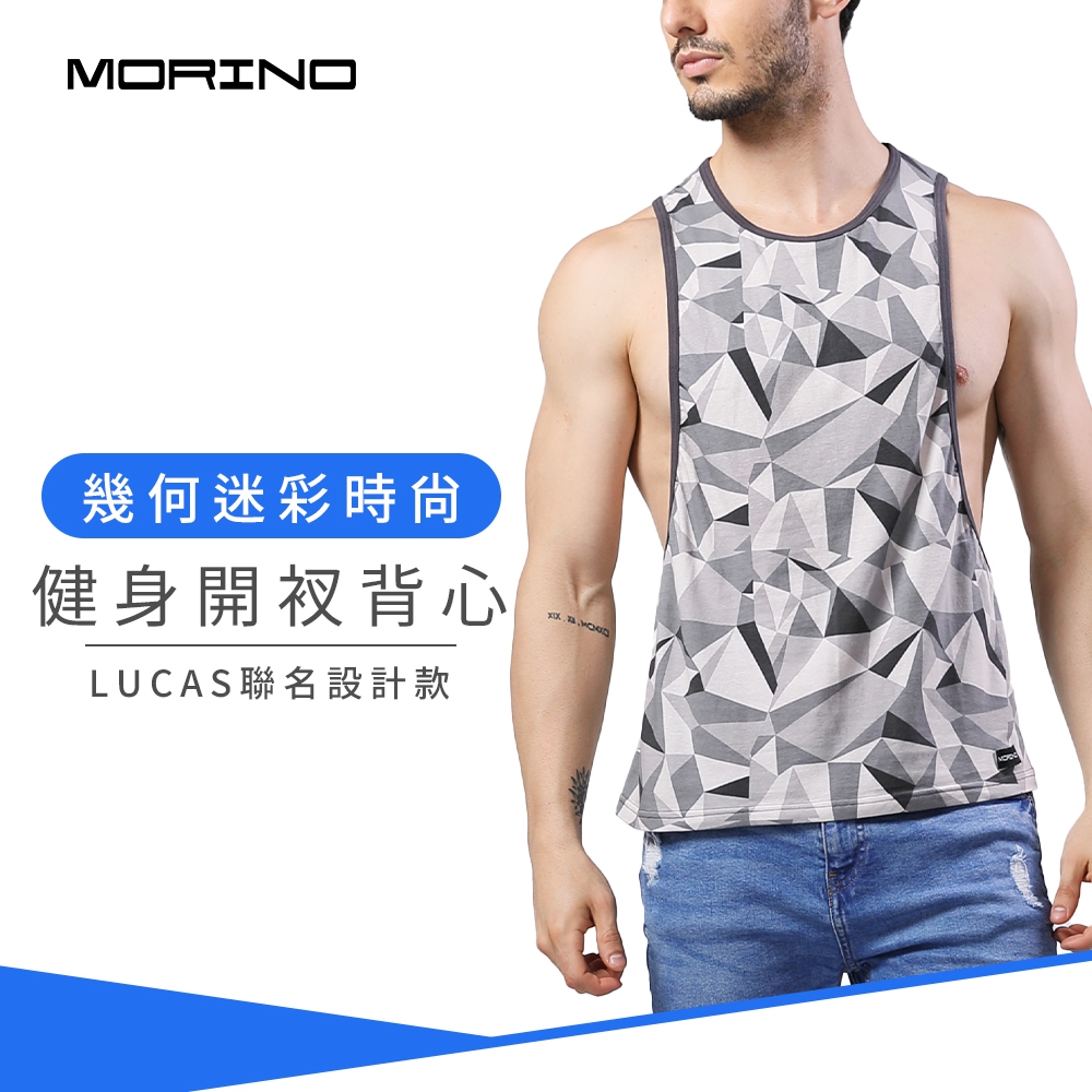 【MORINO】幾何迷彩時尚健身開衩背心_灰色 MO5111型男潮男 健身 質感設計 引領風潮 LUCAS聯名款M 灰色|L 灰色|XL 灰色TanksMORINO摩力諾 時尚機能旗艦館 男女童內著