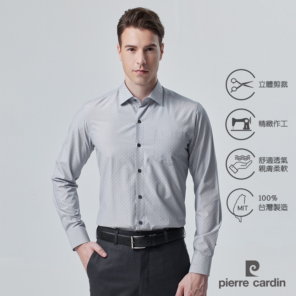 【pierre cardin 皮爾卡登】男襯衫 合身版竹纖維抗皺透氣素色緹花長袖襯衫_灰細條(81863-92)灰細條,38|灰細條,39|灰細條,40|灰細條,41|灰細條,42|灰細條,43|灰細條,37|灰細條,44|灰細條,45Shirtspierre cardin 皮爾卡登|襯衫官方旗艦館