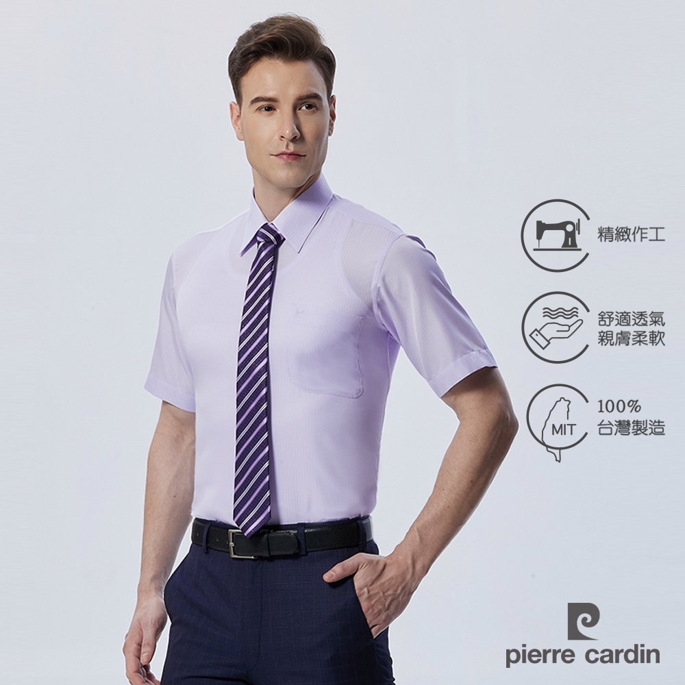 【pierre cardin 皮爾卡登】男襯衫 免燙抗皺上班通勤素色暗紋短袖襯衫_淺紫色(11254-22)淺紫色,38|淺紫色,39|淺紫色,40|淺紫色,41|淺紫色,42|淺紫色,43|淺紫色,44|淺紫色,45Shirtspierre cardin 皮爾卡登|襯衫官方旗艦館