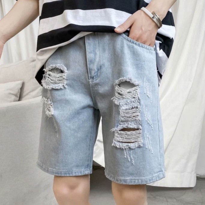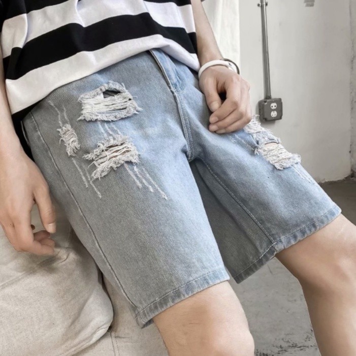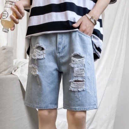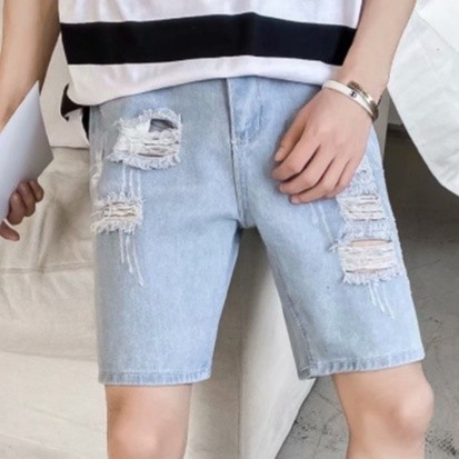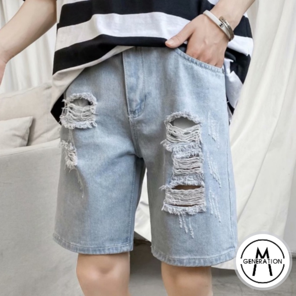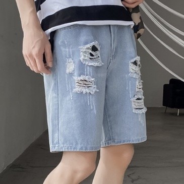 【M世代】男生牛仔短褲男 28-36 破洞牛仔短褲 休閒個性牛仔5五分褲 韓版直筒短褲 修身五分乞丐褲男(CX089)藍色,28|藍色,30|藍色,32|藍色,34|藍色,36M世代官方