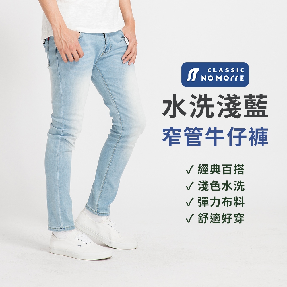 【NoMorre】牛仔褲 淺藍色牛仔褲 窄管牛仔褲 牛仔褲男 水洗彈力牛仔布 M-3L 台灣現貨 #5515M (28腰)|L (30腰)|XL (32腰)|2L (34腰)|3L (36腰)NoMorre 台灣現貨 牛仔/休閒/工作褲