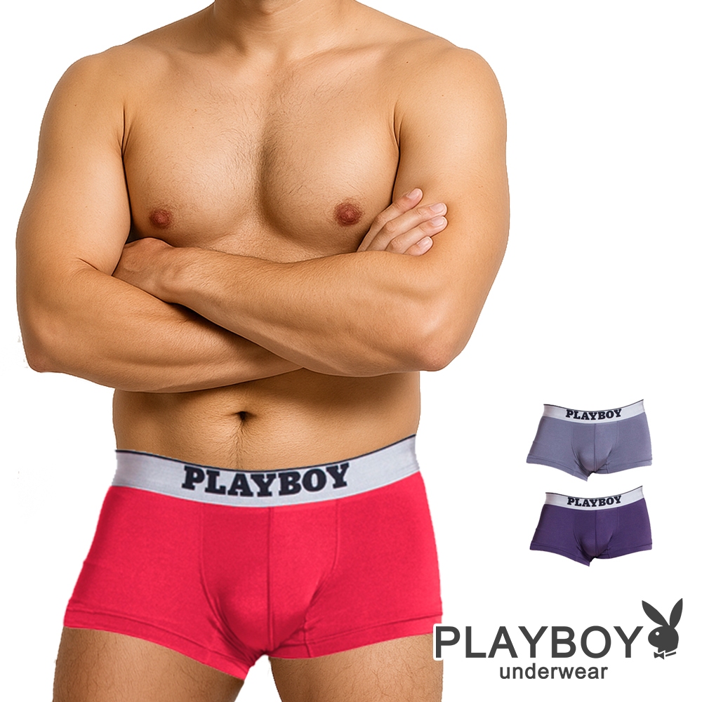 PLAYBOY|經典LOGO低腰彈性平口四角內褲 四角內褲紅_M|紅_L|紅_XL|紫_M|紫_L|紫_XL|灰_M|灰_L|灰_XLUnderwearPLAYBOY_英殷國際
