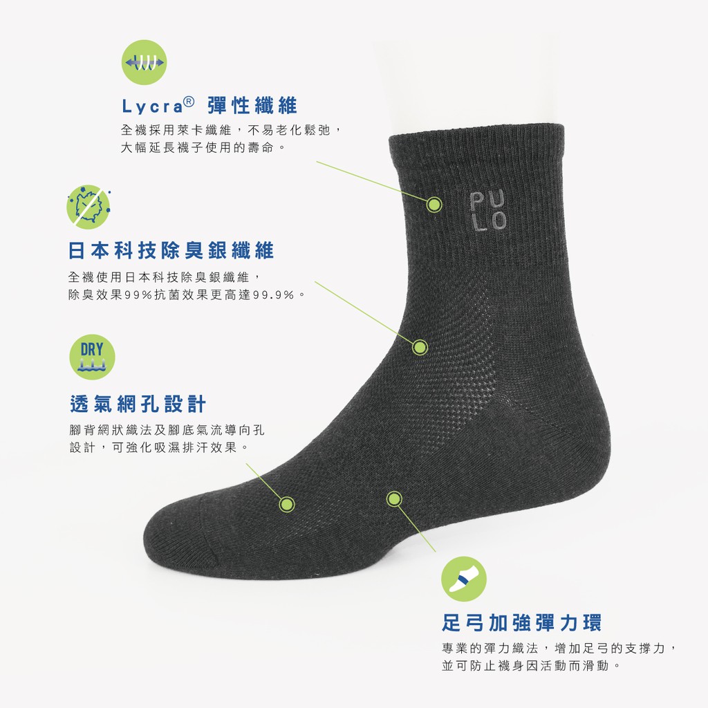 PULO-穿立淨除臭輕著簡約短襪 除臭襪 消臭襪 透氣排汗 涼爽 一般厚度 短襪 短筒襪 素色襪