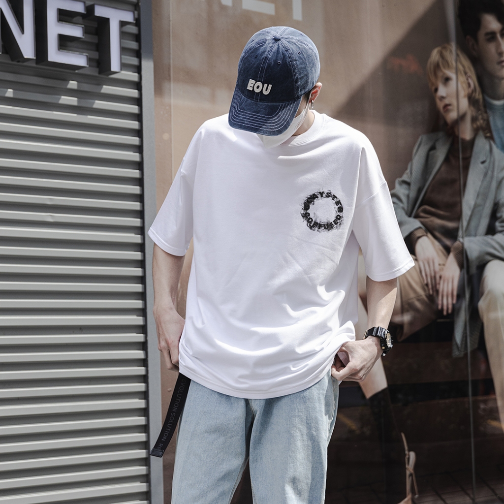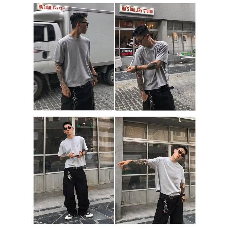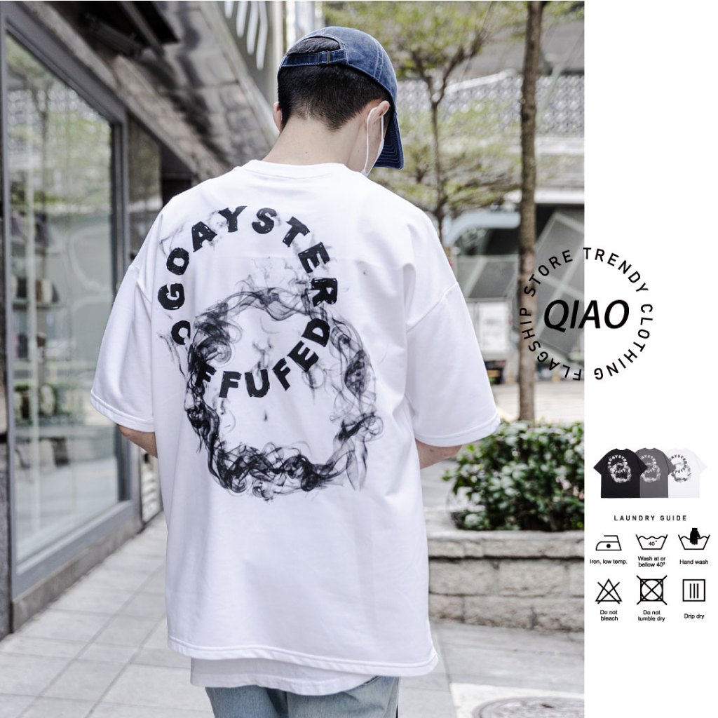 QIAO 韓國新貨 太帥 叛逆的消散 街頭穿搭 高磅 細絨棉 落肩 五分袖 寬鬆 T恤 短袖 短T 情侶 帥T 衣服 男黑色,M|黑色,L|白色,M|白色,L|灰色,M|灰色,LT-ShirtsQIAO 潮人服飾旗艦店