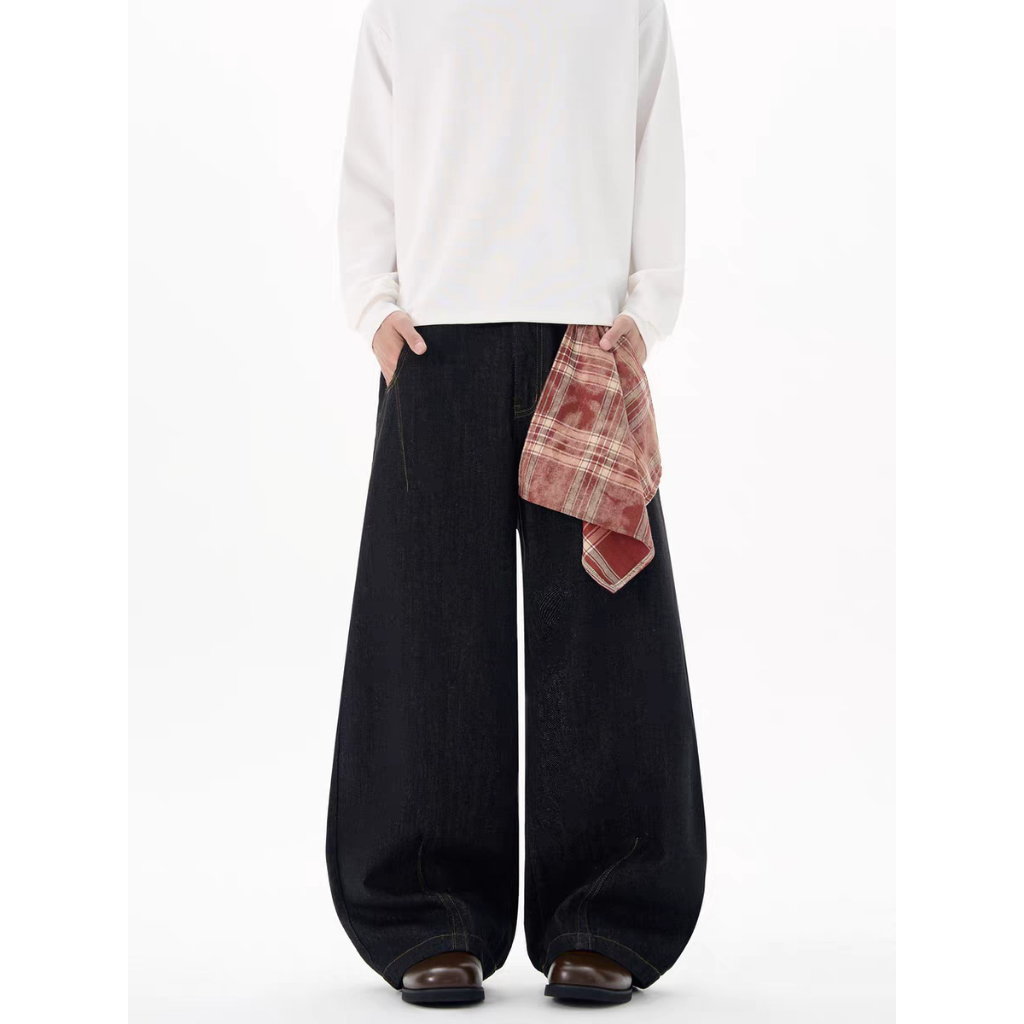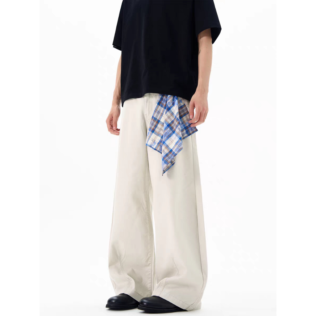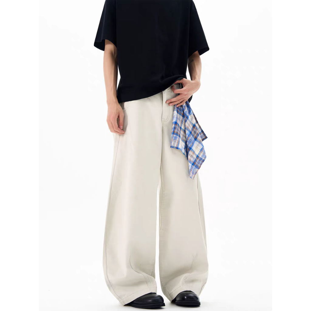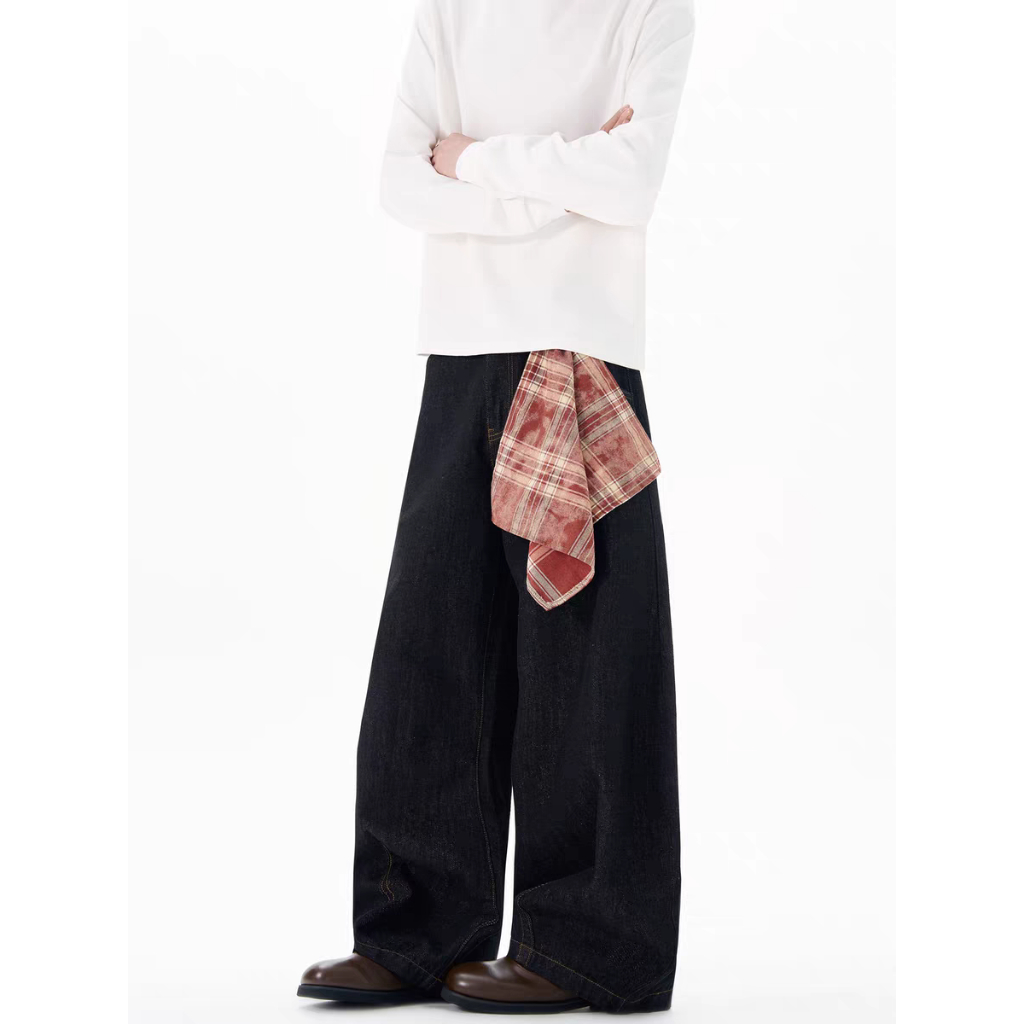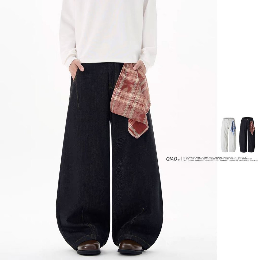 【QIAO】美式復古 (附方巾) 牛仔彎刀褲 寬褲 闊腿褲 彎刀褲 牛仔褲 水洗長褲 牛仔長褲 長褲 長褲男白色,M|白色,L|白色,XL|白色,2XL|黑色,M|黑色,L|黑色,XL|黑色,2XLQIAO 潮人服飾旗艦店