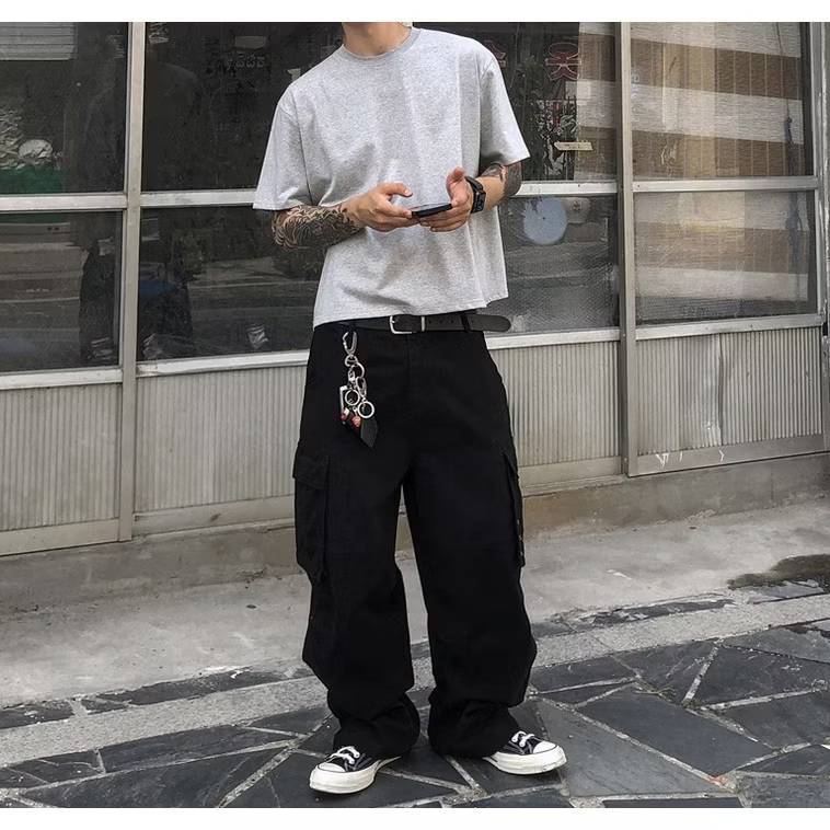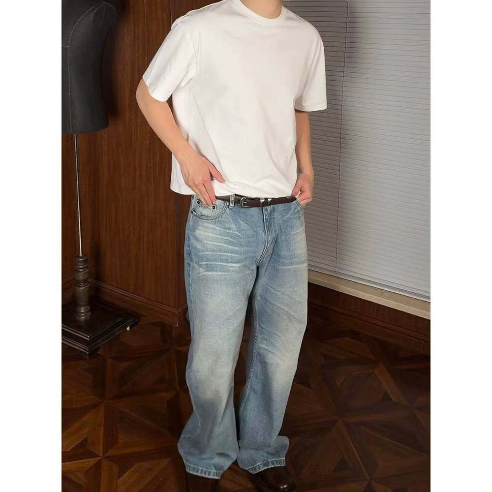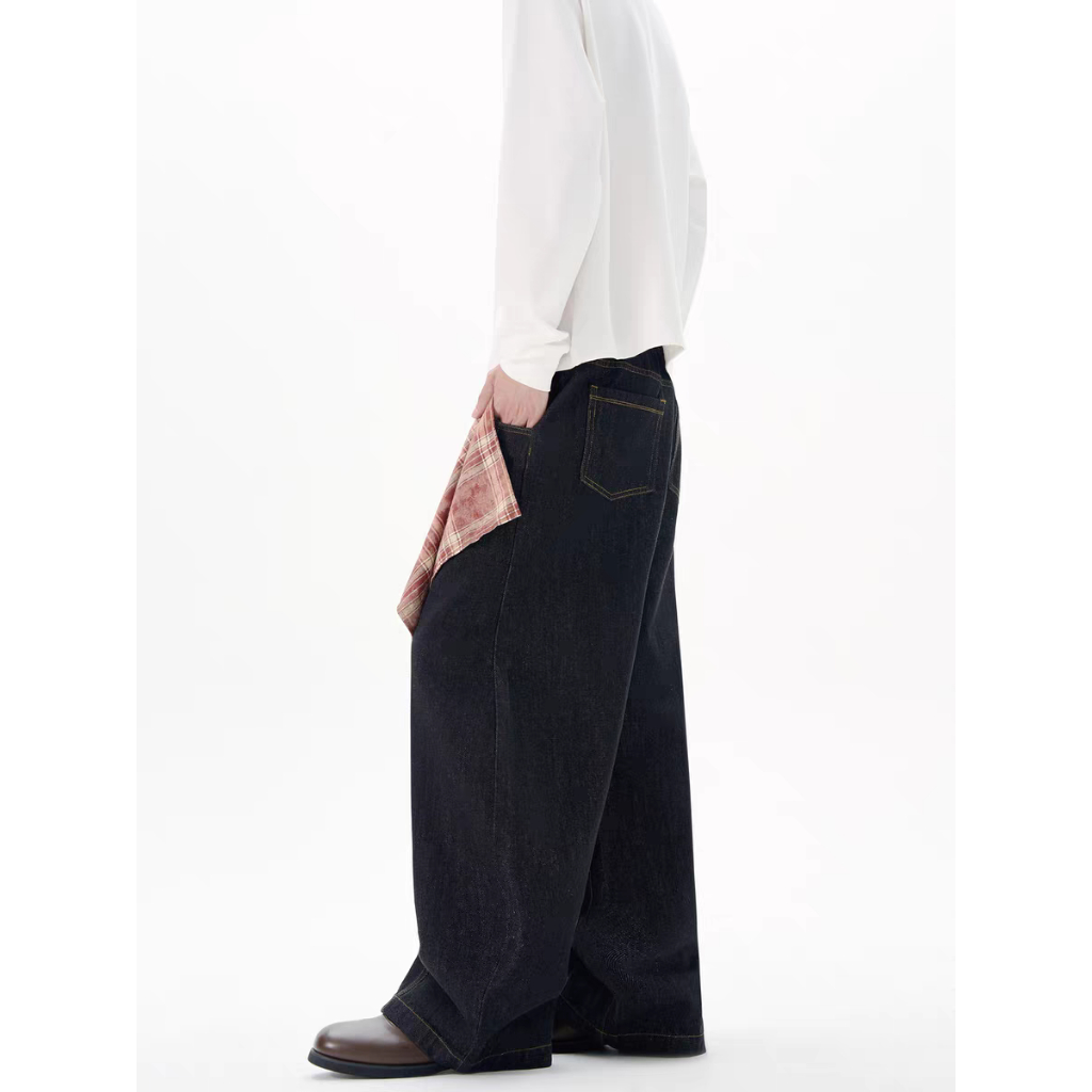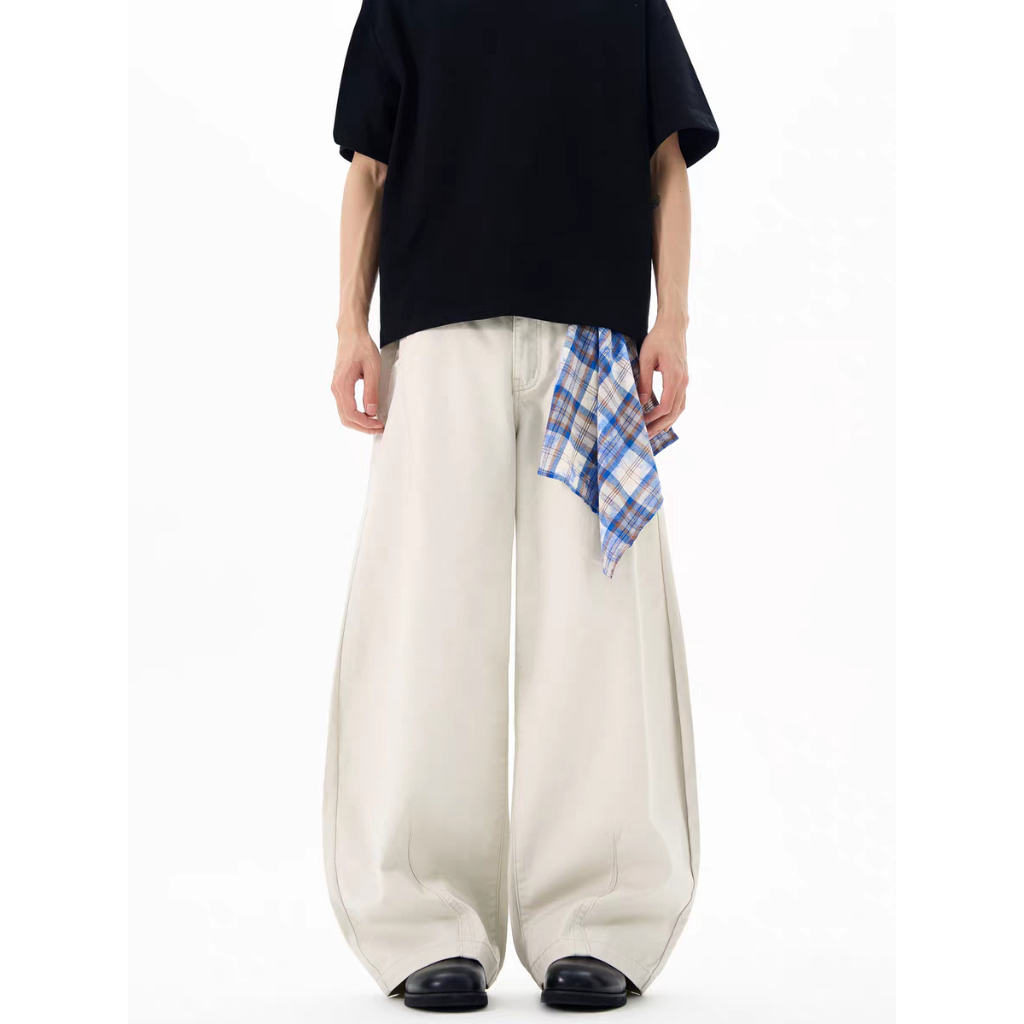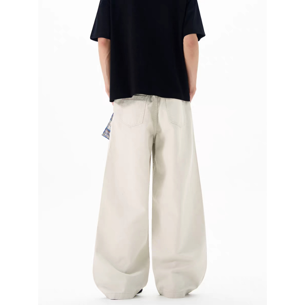 【QIAO】美式復古 (附方巾) 牛仔彎刀褲 寬褲 闊腿褲 彎刀褲 牛仔褲 水洗長褲 牛仔長褲 長褲 長褲男白色,M|白色,L|白色,XL|白色,2XL|黑色,M|黑色,L|黑色,XL|黑色,2XLQIAO 潮人服飾旗艦店