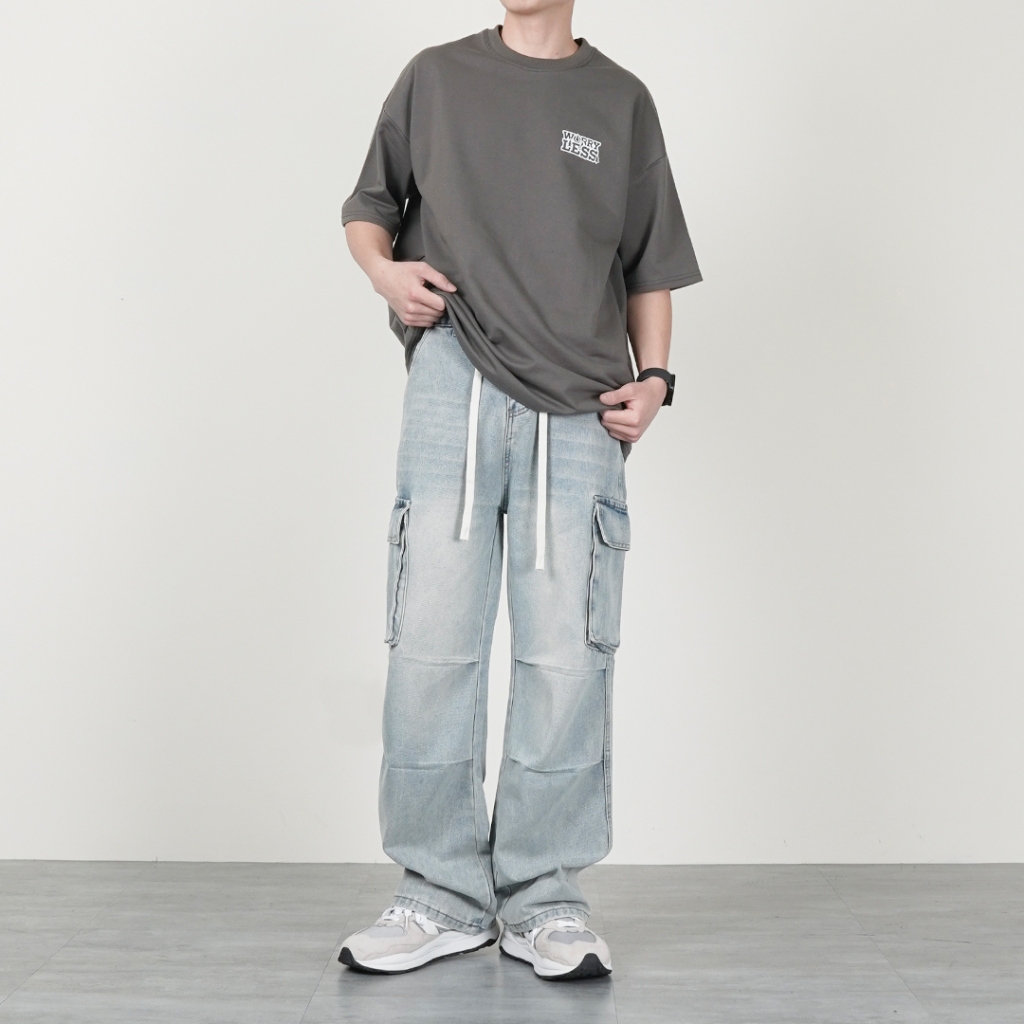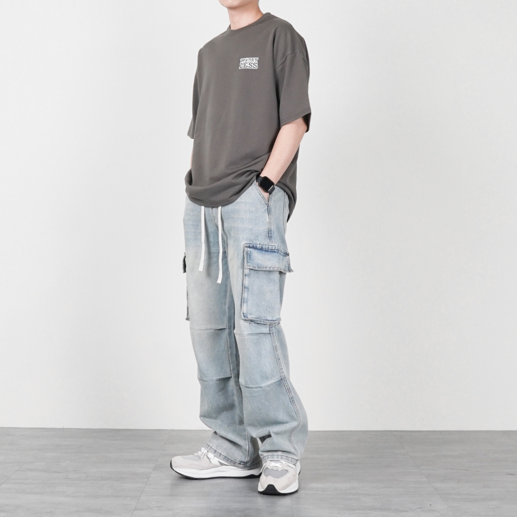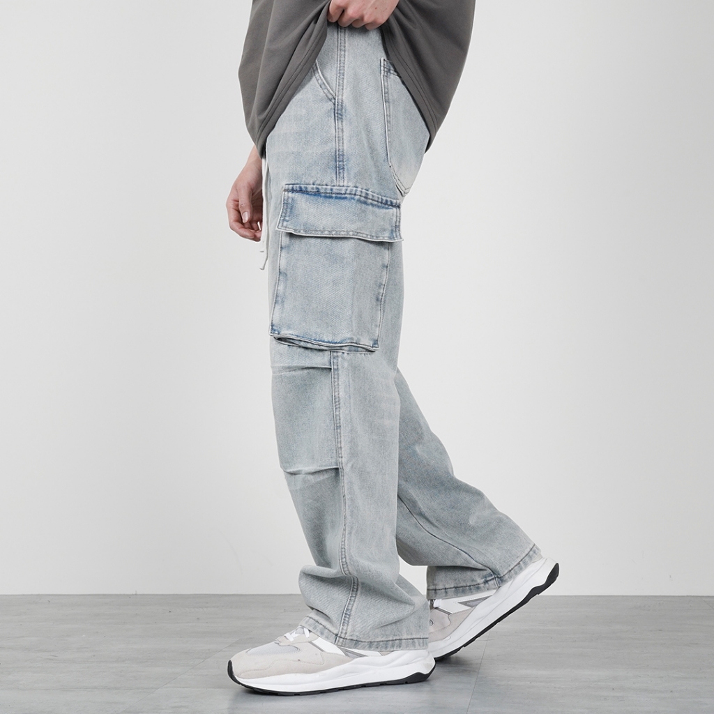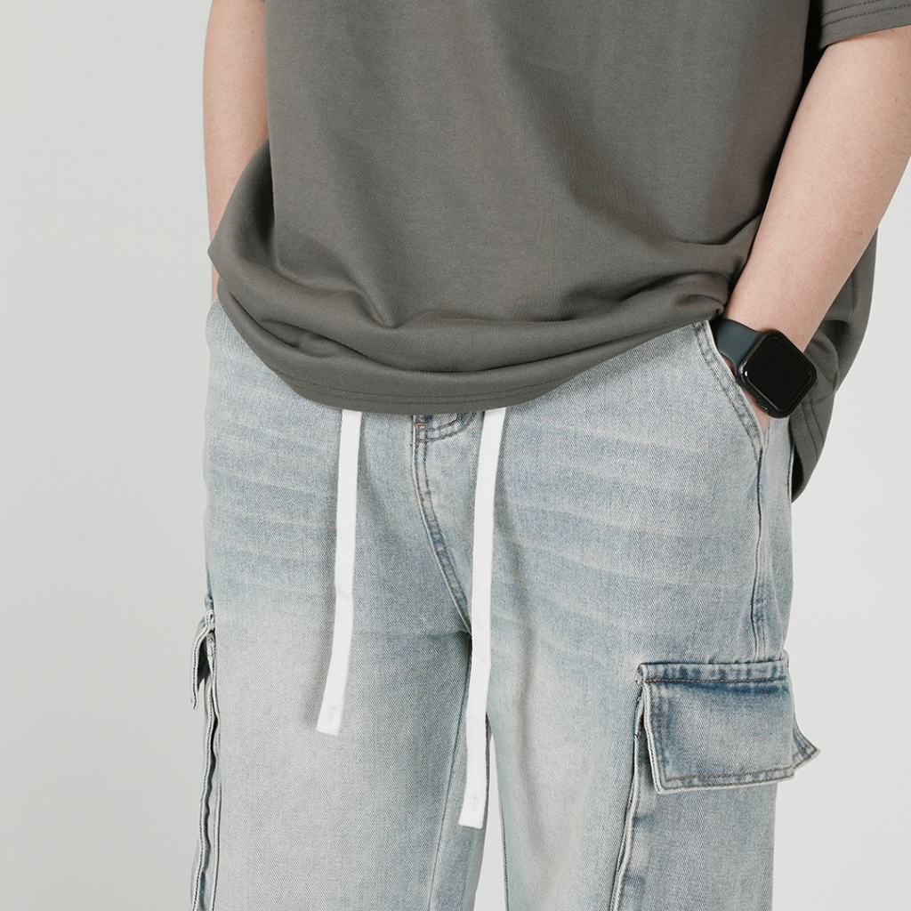 【QIAO】2682 立體褶痕 鬆緊褲頭 傘兵工裝牛仔褲 日系 水洗 淺色 直筒褲 牛仔 工作褲 長褲 褲子M|L|XL|XXLCargoQIAO 潮人服飾旗艦店