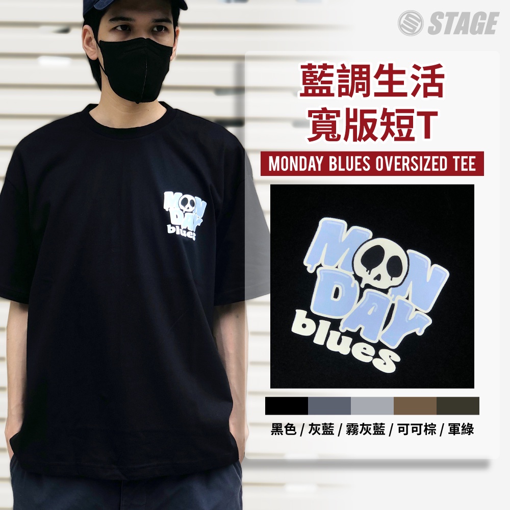 【STAGE】藍調生活寬版短T 可可棕/灰藍/霧灰藍/軍綠/黑色