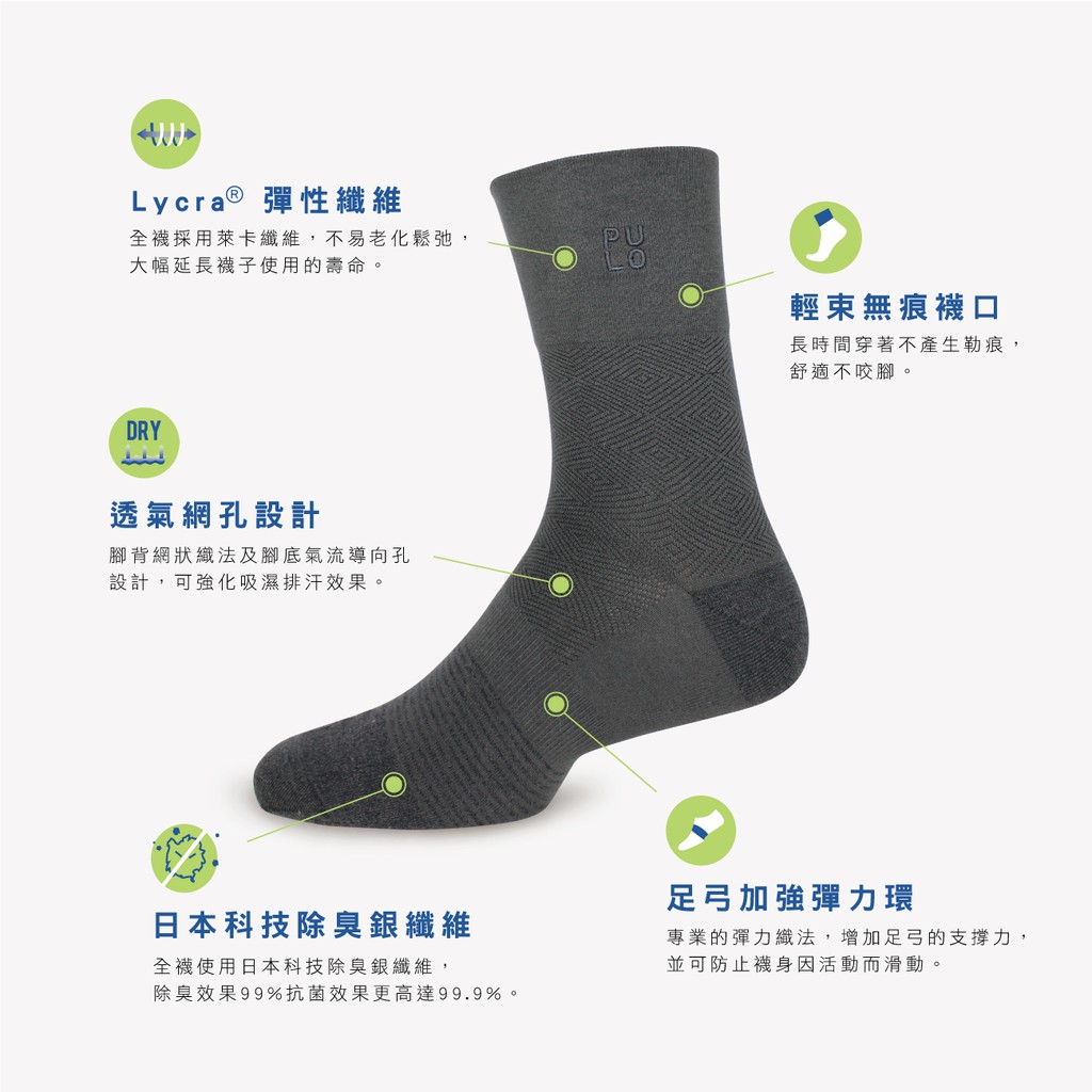 PULO-穿立淨除臭耐磨橫紋紳士襪 一般厚度 除臭襪 防臭襪 無痕襪 商務型紳士襪 素色襪 短襪 短襪 消臭襪 素色襪紳士黑|紳士藍|紳士灰PULO布蘿襪館官方直營旗艦店|穿立淨除臭襪
