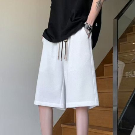 • 【MS】厚磅休閒五分褲【台灣現貨】男生短褲棉褲運動健身夏天抽繩寬鬆素色韓版休閒直筒籃球訓練彈力拼接口袋穿搭美式純棉立體耐