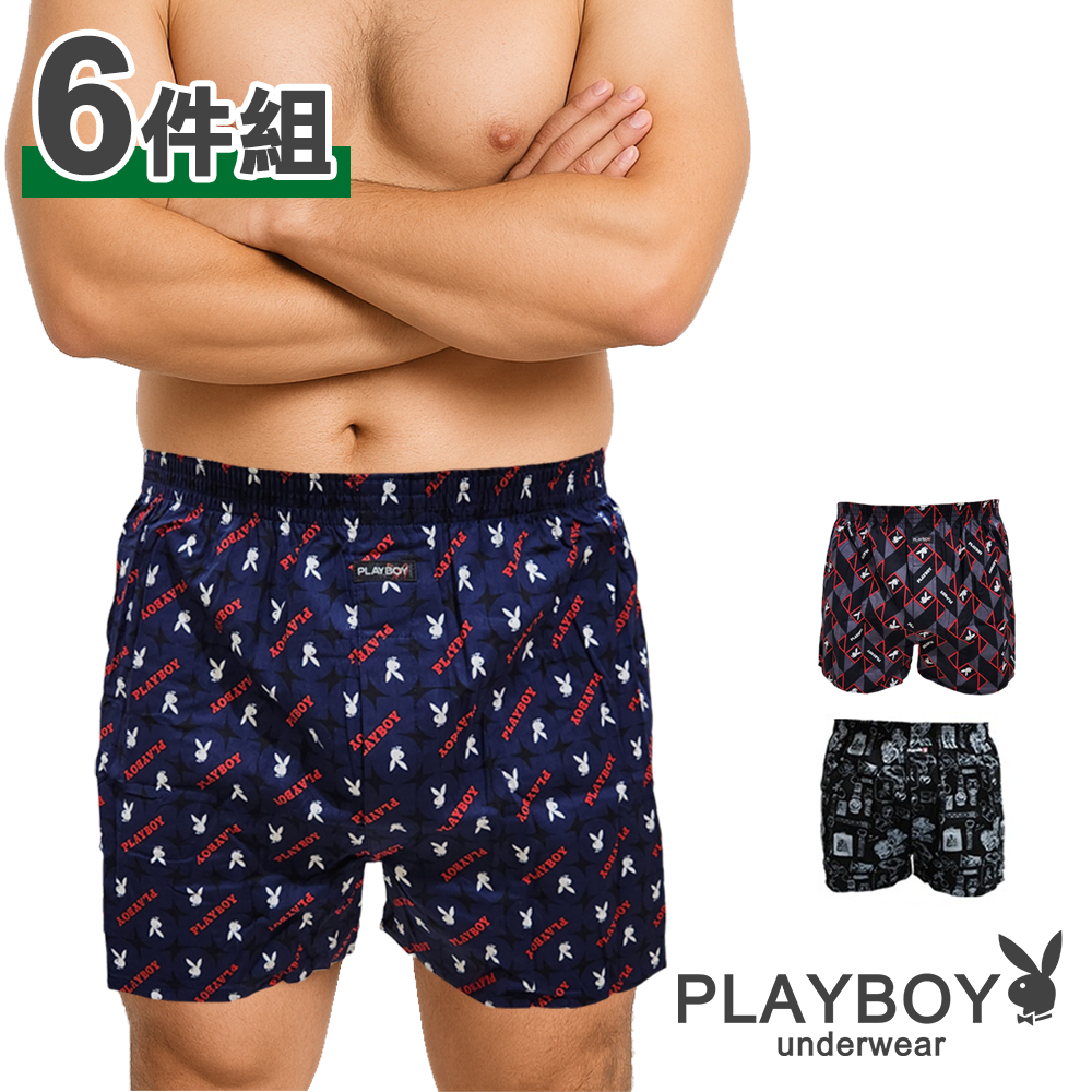 PLAYBOY|經典LOGO印花 四角內褲 平口內褲|6件組顏色隨機,M|顏色隨機,L|顏色隨機,XL|顏色隨機,XXLUnderwearPLAYBOY_英殷國際