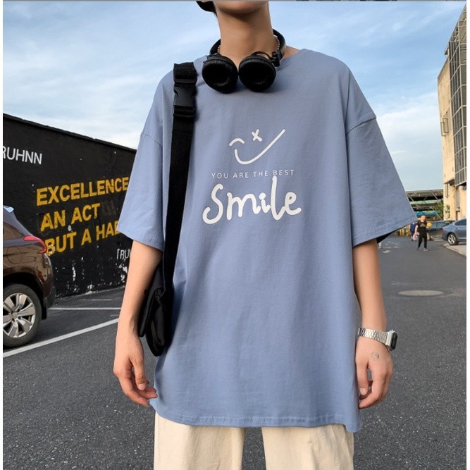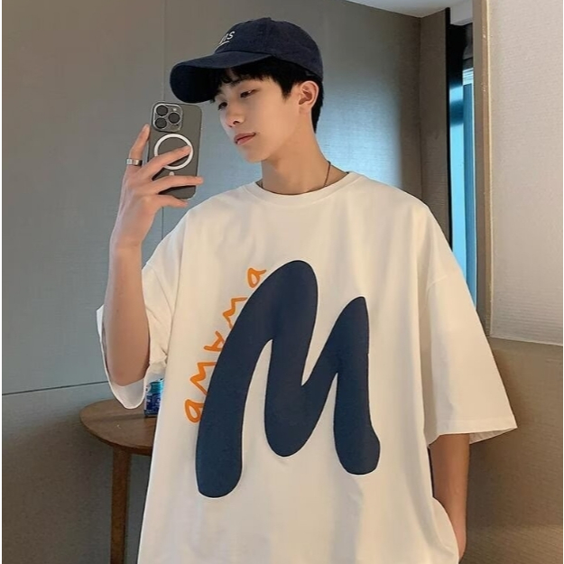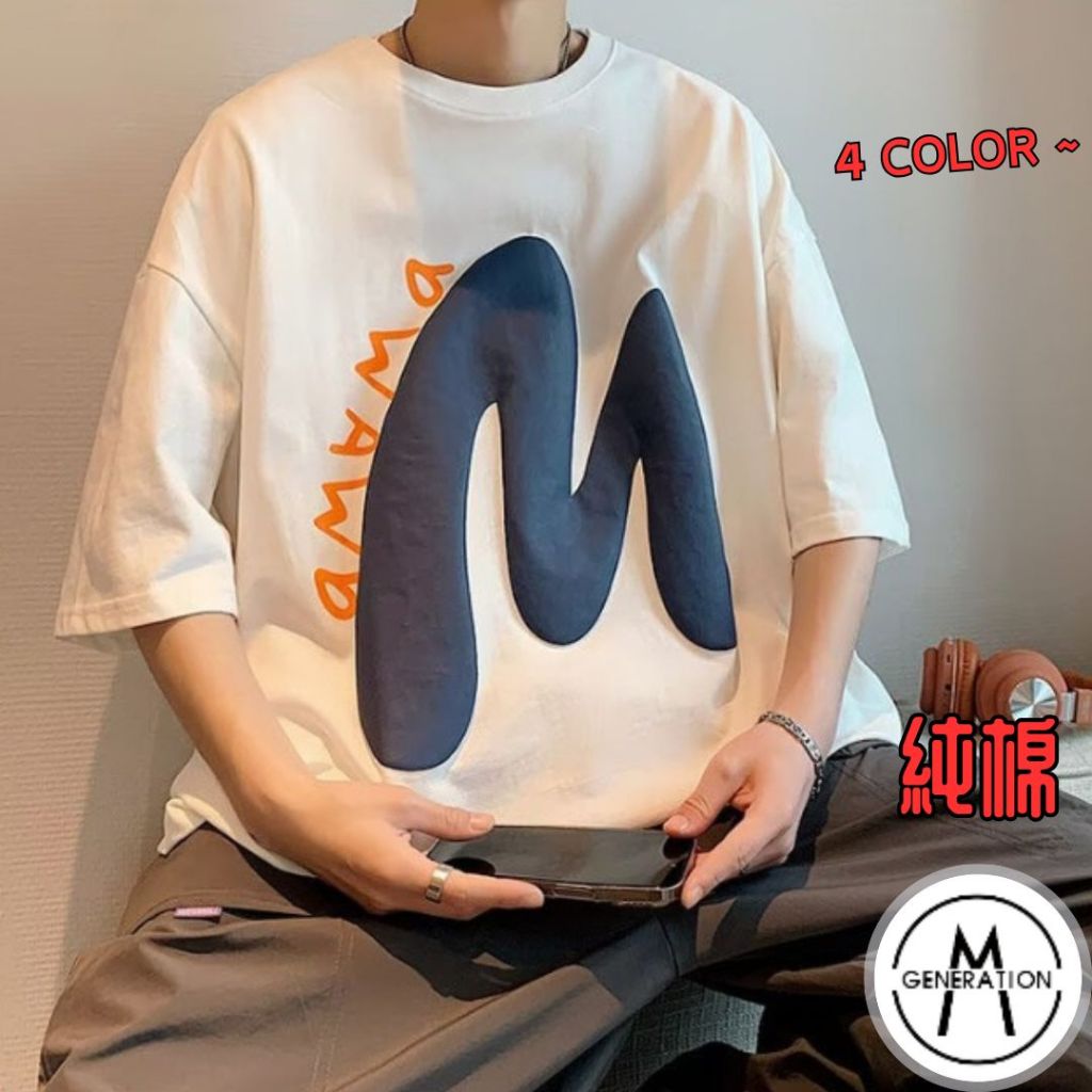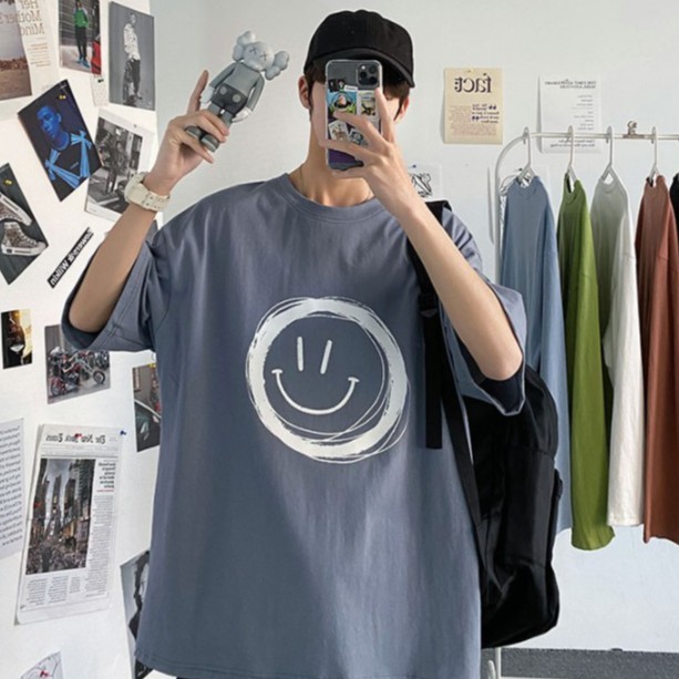 【M世代】短袖t恤 笑臉印花T恤 男生大碼潮胖短袖 男女情侶裝 青少年寬鬆短T 百搭上衣 五分袖 MKPT971