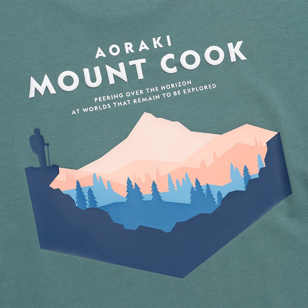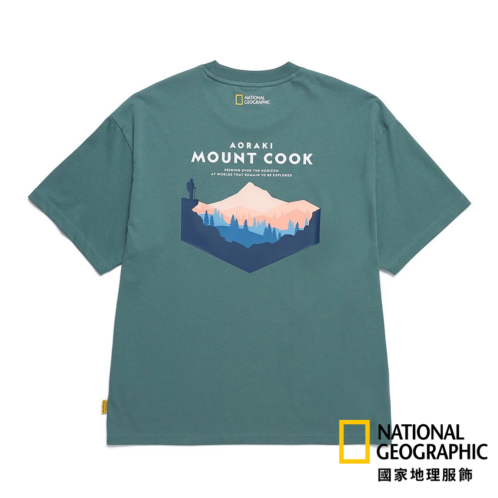 【國家地理服飾】男女同款 MOUNT COOK印花圖案微寬鬆涼感短袖上衣 – 湖水綠色90(S)|95(M)|100(L)|105(XL)|110(XXL)T-ShirtsNational Geographic國家地理服飾官方旗艦店