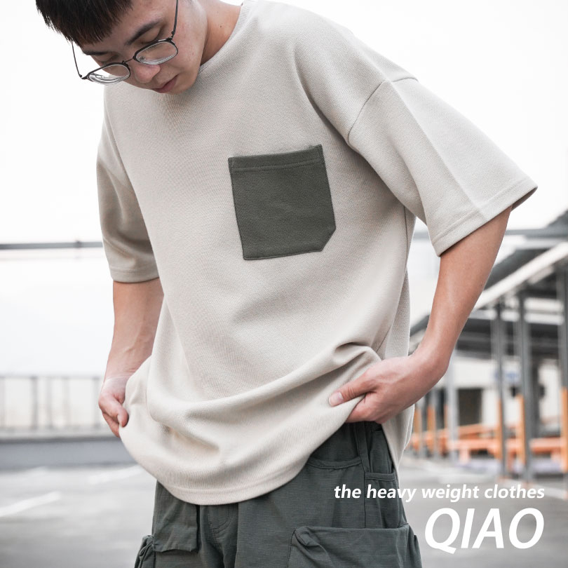 QIAO 高磅新貨 高爾棉 日系 撞色口袋 寬鬆上衣 超越華夫格 落肩 短T T恤 who a u 工裝 日本 韓國 帥泰奶色,M|泰奶色,L|淺米杏色,L|工裝黑色,M|工裝黑色,L|淺米杏色,M|工裝綠,M|工裝綠,L|空軍藍,M|空軍藍,L|愛馬仕灰色,M|愛馬仕灰色,LT-ShirtsQIAO 潮人服飾旗艦店