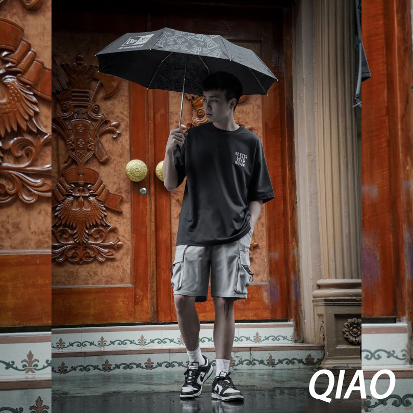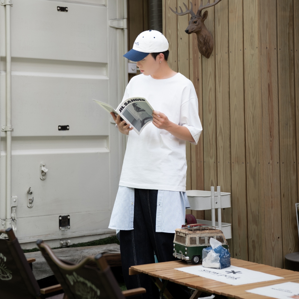 QIAO X 塗鴉臉 升級細絨棉 五分袖 落肩 寬鬆 短袖 情侶 韓國男裝 寬T 上衣 衣服 短袖男 情侶短T 男生衣服