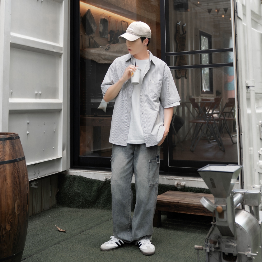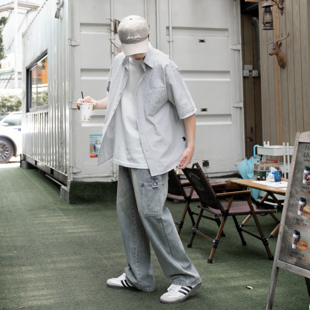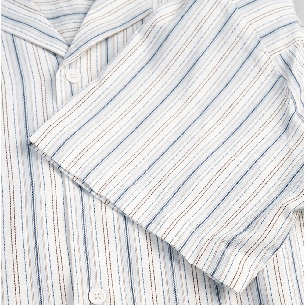 QIAO 文青小電繡 直條紋襯衫 日系 條紋襯衫 短袖襯衫 港風 y2k 復古襯衫 襯衫黑色,M|黑色,L|黑色,XL|黑色,2XL|淺藍色,M|淺藍色,L|淺藍色,XL|淺藍色,2XLShirtsQIAO 潮人服飾旗艦店