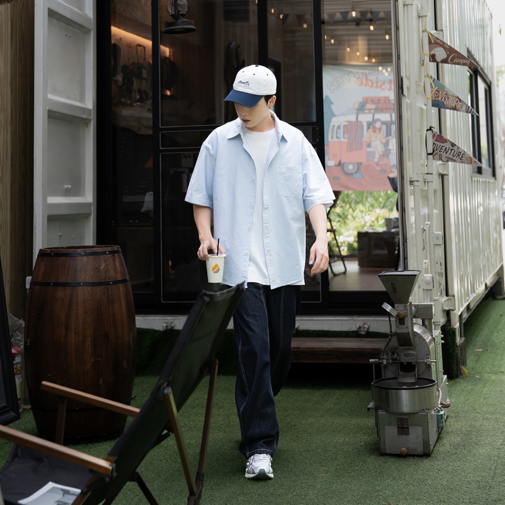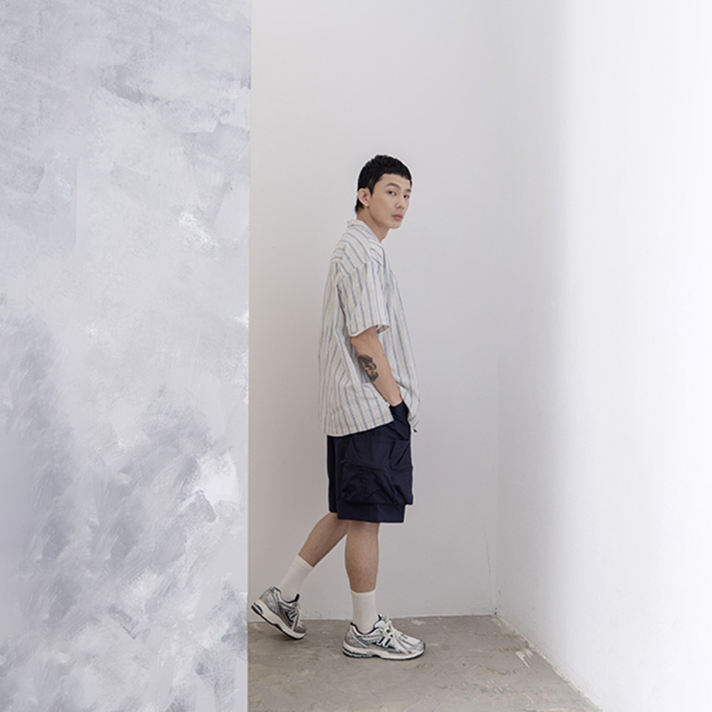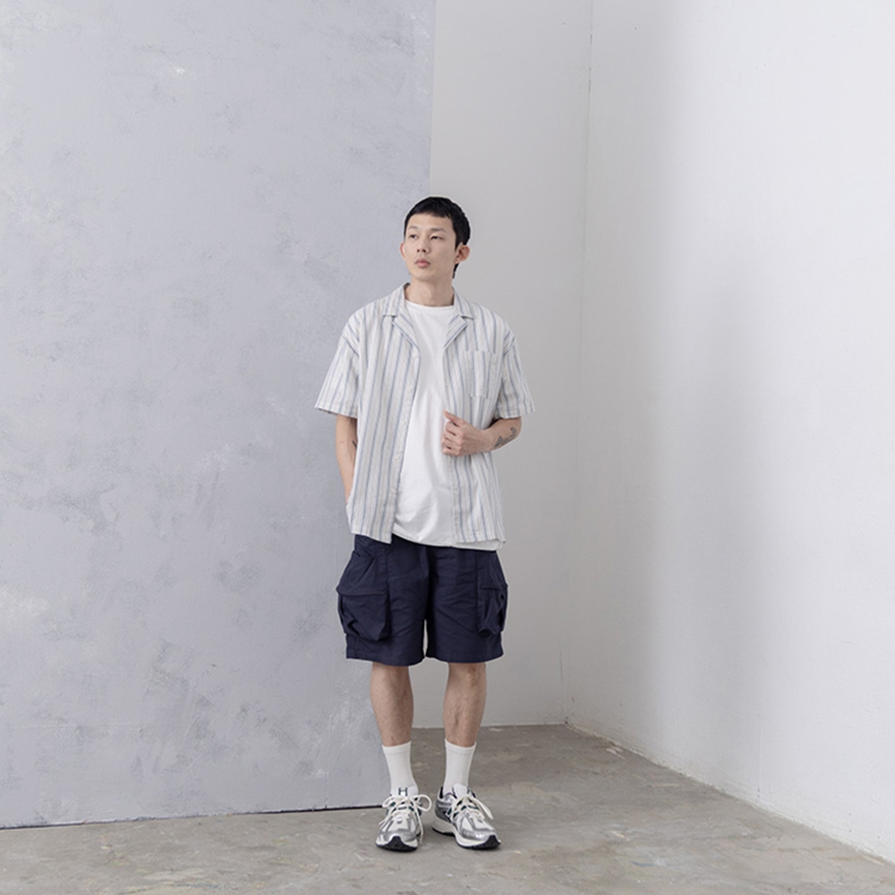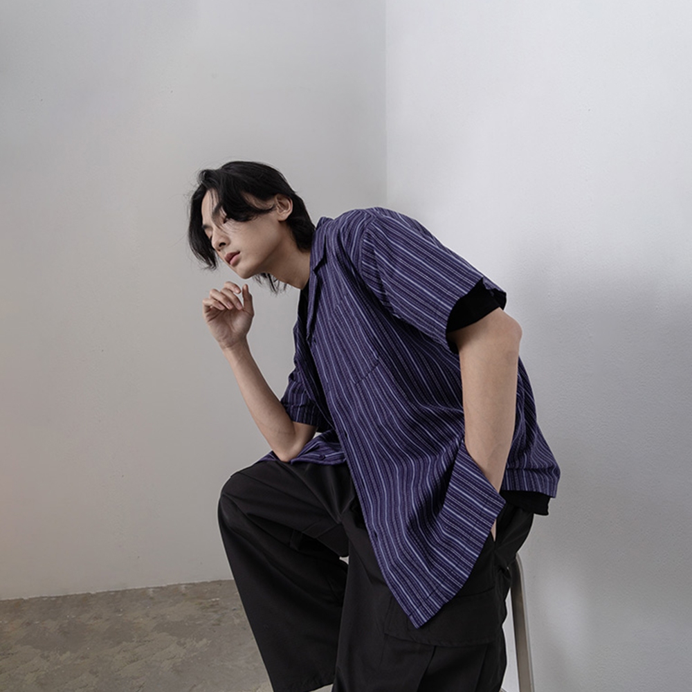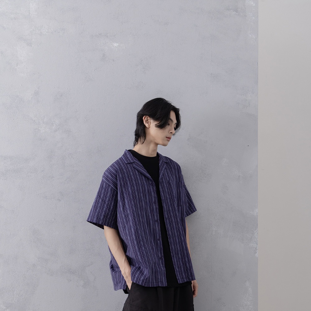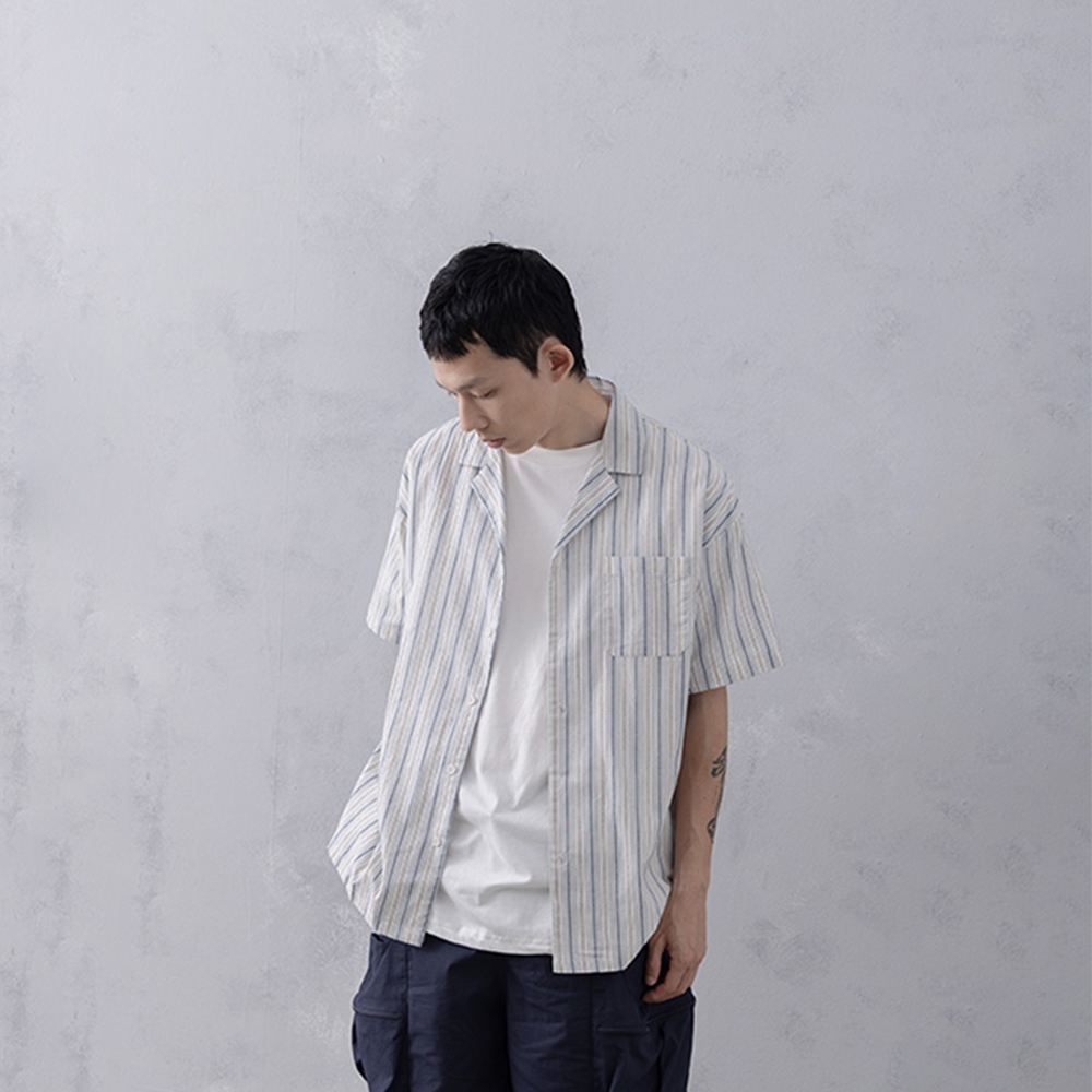 QUEENSHOP_ S 短袖 男裝 立體直紋古巴領襯衫 兩色售 M/L/XL 現+預 【01025524】杏M|杏L|杏XL|深藍M|深藍L|深藍XLShirtsQUEENSHOP