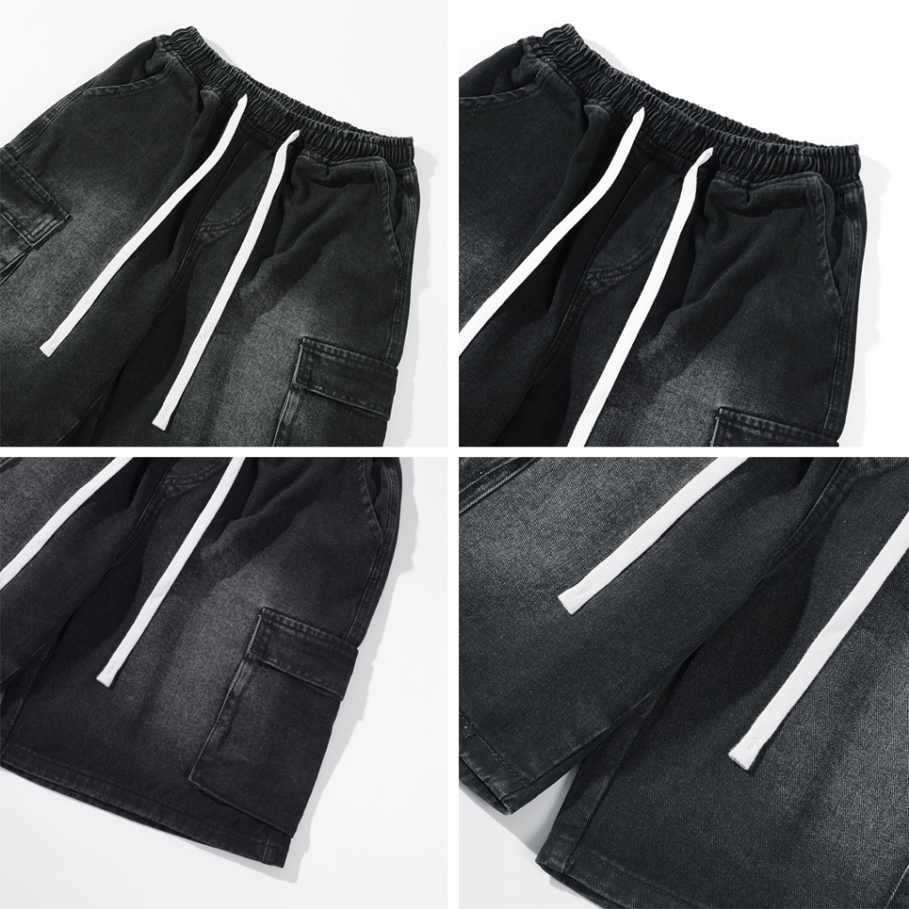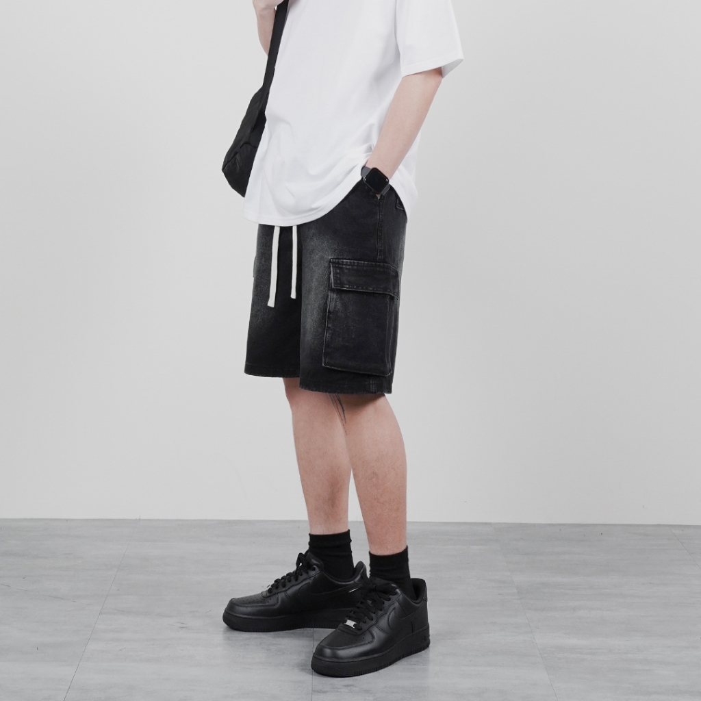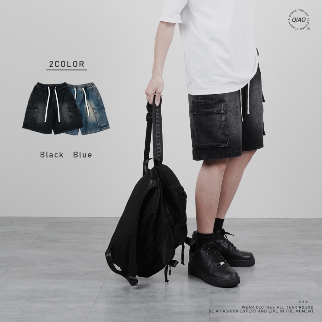 【QIAO】shorts <彈性褲頭> 水洗刷舊 牛仔短褲 工作褲 休閒短褲 短褲 牛仔褲 男生短褲 牛仔工作褲 工裝黑色,M|黑色,L|黑色,XL|黑色,XXL|藍色,M|藍色,L|藍色,XL|藍色,XXLQIAO 潮人服飾旗艦店