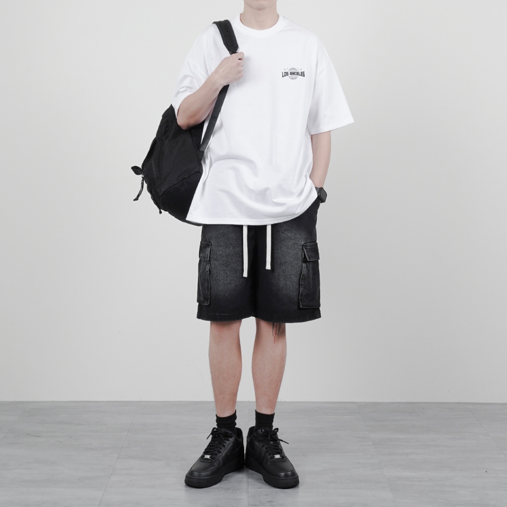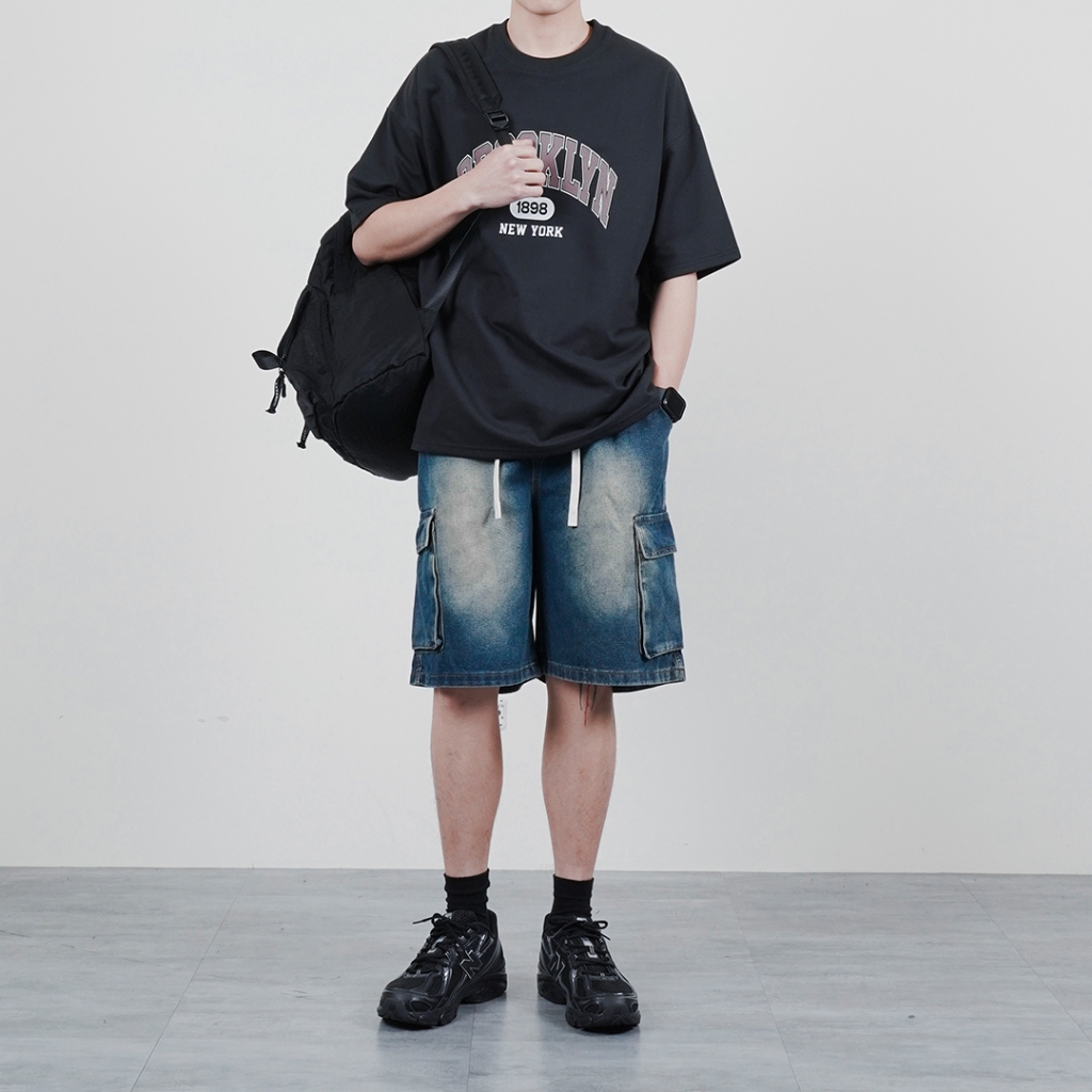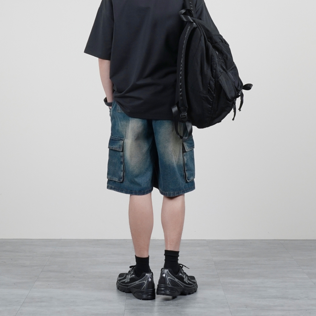 【QIAO】shorts <彈性褲頭> 水洗刷舊 牛仔短褲 工作褲 休閒短褲 短褲 牛仔褲 男生短褲 牛仔工作褲 工裝黑色,M|黑色,L|黑色,XL|黑色,XXL|藍色,M|藍色,L|藍色,XL|藍色,XXLQIAO 潮人服飾旗艦店
