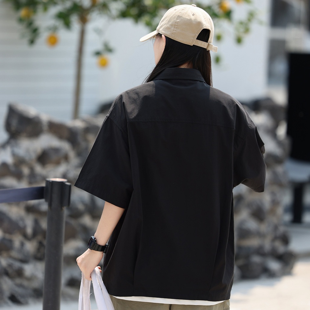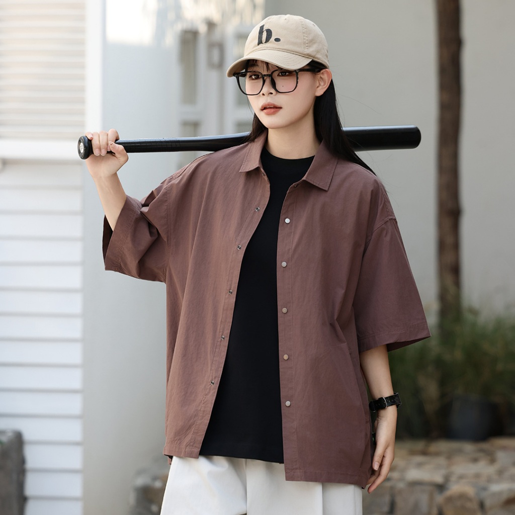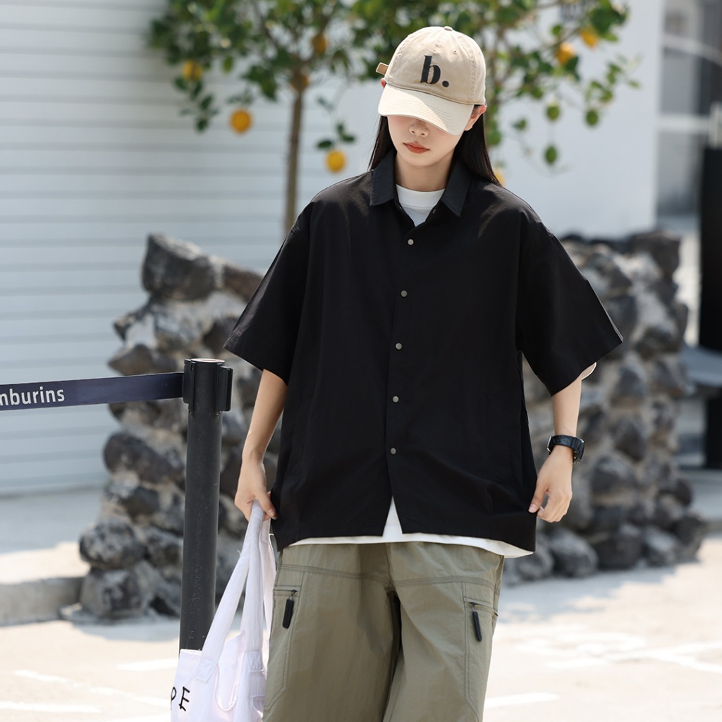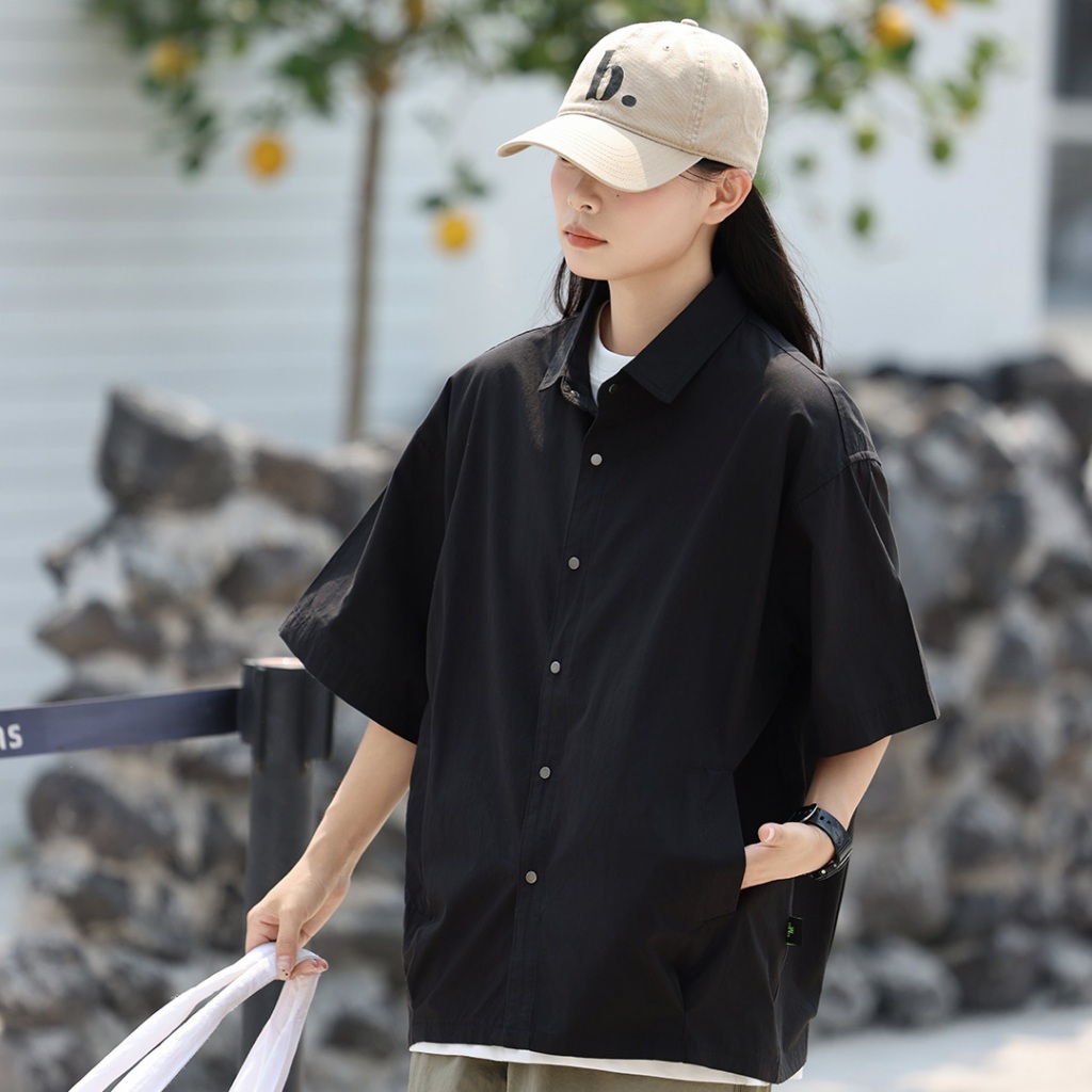 【QIAO】壓扣棉麻 落肩襯衫 工作襯衫 短袖襯衫 情侶裝 寬鬆襯衫 素色襯衫 襯衫 夏季襯衫男 黑色襯衫黑色,M|黑色,L|黑色,XL|黑色,2XL|咖色,M|咖色,L|咖色,XL|咖色,2XLShirtsQIAO 潮人服飾旗艦店