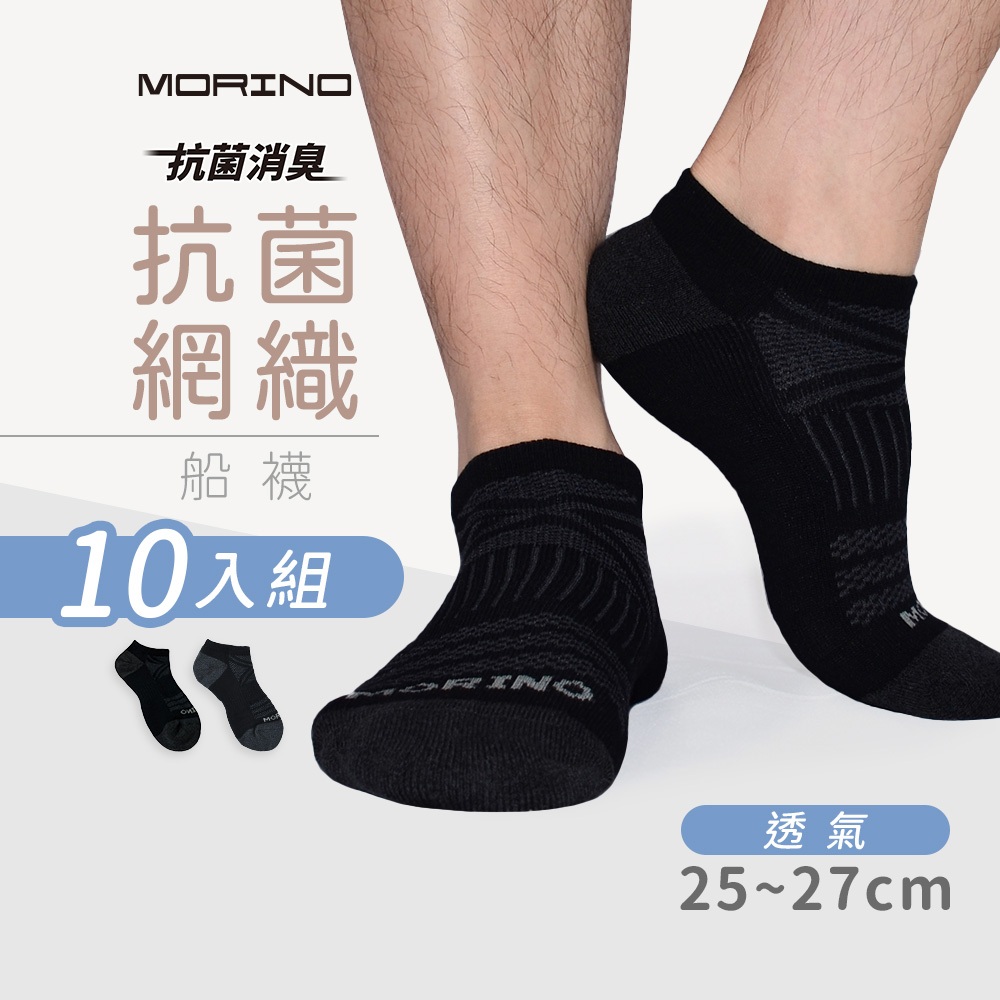 【MORINO】(10雙組)MIT抗菌網織透氣船襪 男襪 運動襪 機能襪 船襪 L25~27CM MO39102L 黑色|M 黑色MORINO摩力諾 時尚機能旗艦館 男女童內著